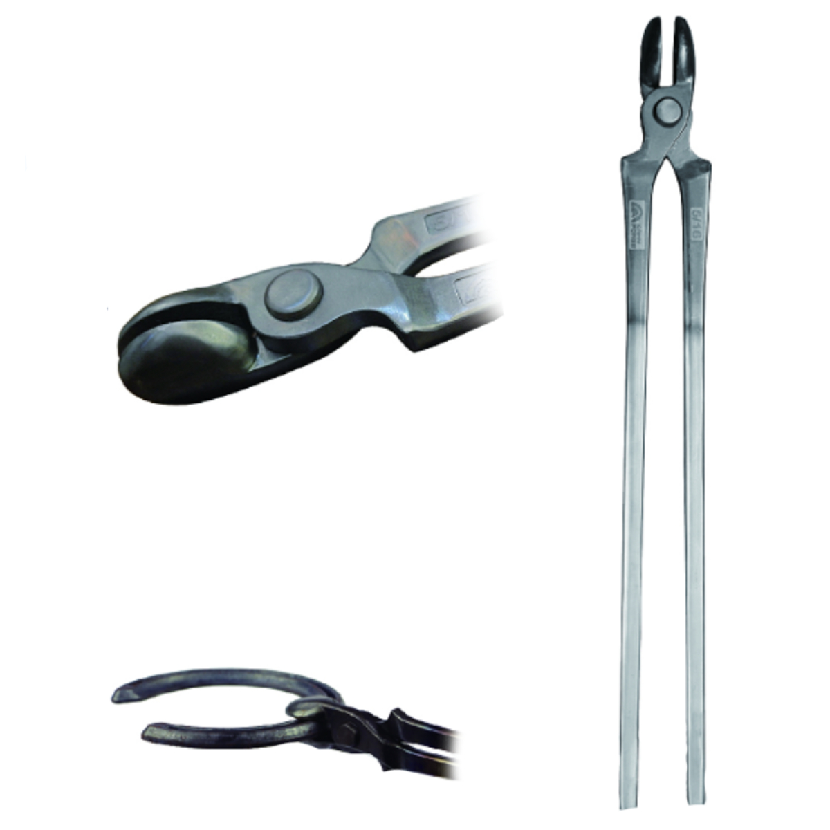Кузнечные клещи (pincers) для горячей ковки с круглой головкой. Обеспечивают идеальный захват. Имеют удобные ручки, отполированные вручную, что придает дополнительный комфорт в использовании. Рабочая часть клещей изготовлена из высококачественной инструментальной стали 1045.