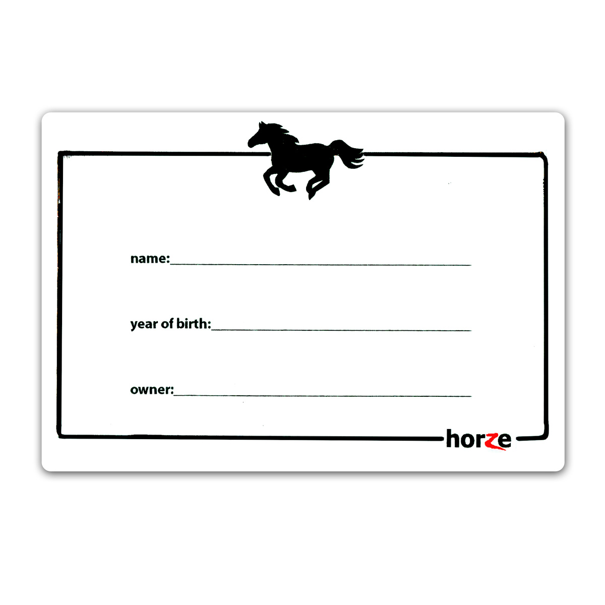 На этой таблице можно написать имя и дату рождения лошади, а также имя хозяина. Используйте стираемые маркеры для досок.