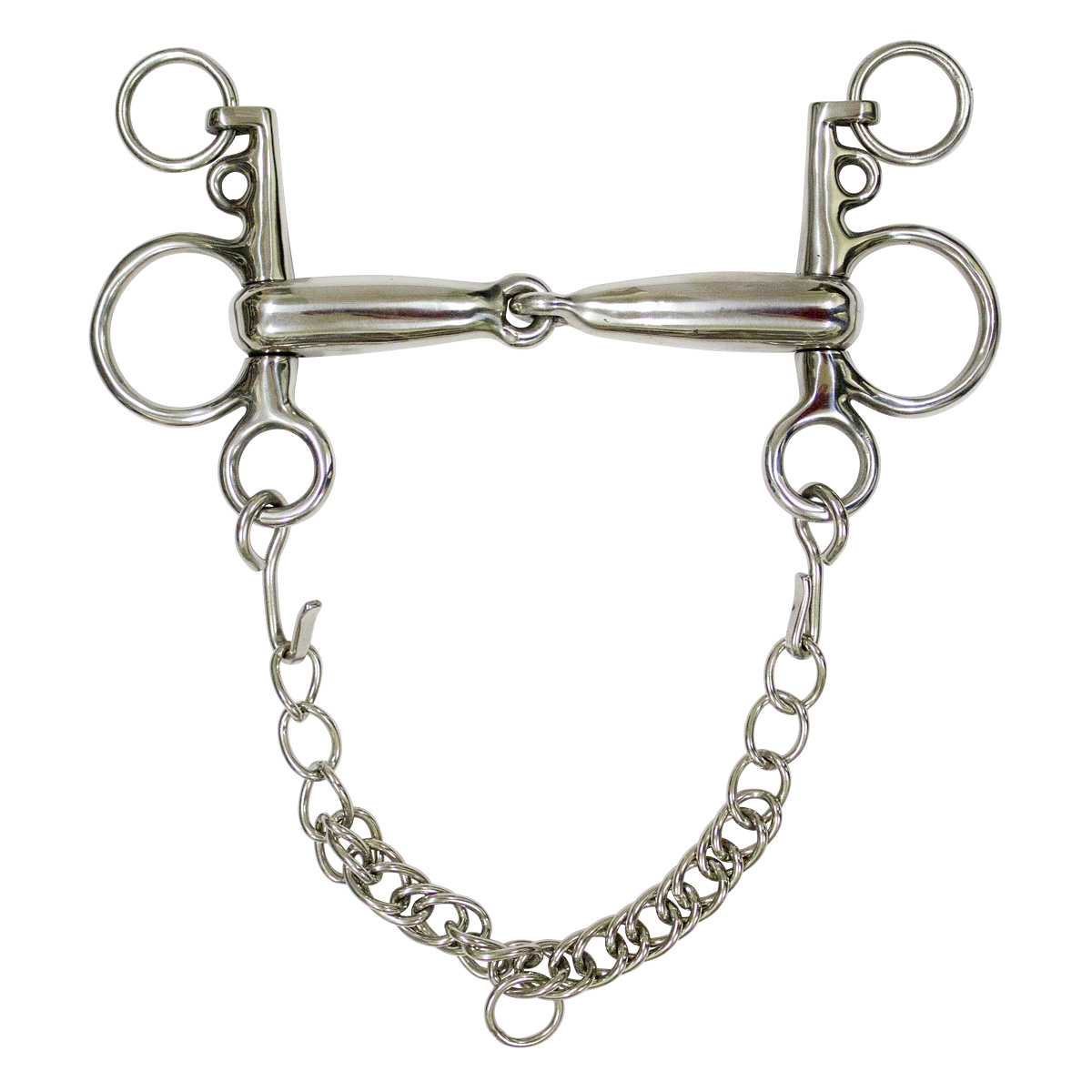 Пелям трензельный дутый с цепочкой. Толщина грызла: 20 мм. Рычаг: 8 см.