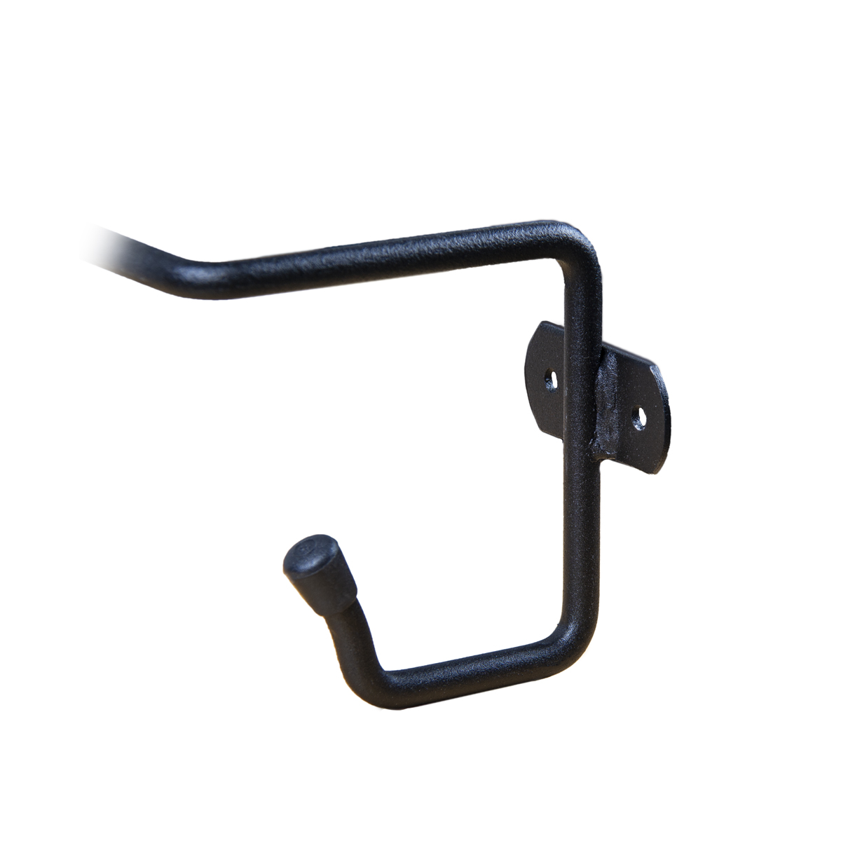 Стационарный кронштейн, который можно использовать как вешалку для вальтрапов и попон, а также для организации порядка в любом месте на конюшне и в амуничнике. Изготовлен из стали с полимерным напылением черного цвета, что придает ему дополнительный эстетичный вид. Толщина прутка 8 мм. Удобно крепится на денник или на стену. Занимает мало места, что позволяет использовать его даже в коневозке. Легко мыть и содержать в чистоте, что обеспечивает долгий срок службы и хороший внешний вид. По краям кронштейна имеются 2 крючка с пластиковыми колпачками для амуниции и экипировки: недоуздки, поводья, уздечки, головной убор и т.д. При использовании дополнительных универсальных крючков, может использоваться как многофункциональный органайзер всего необходимого в нужном месте.
