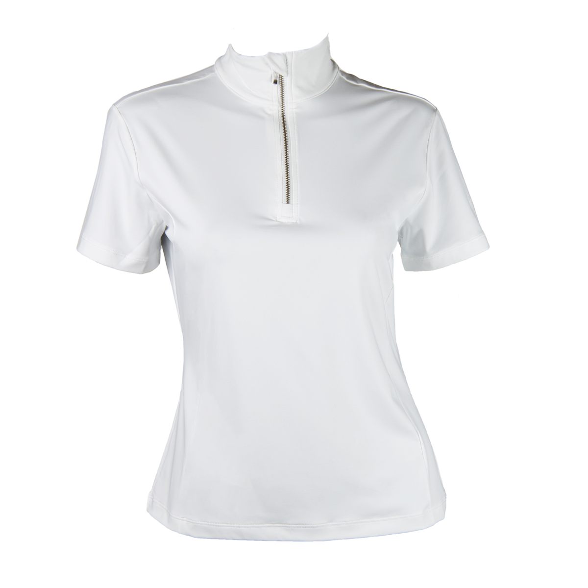 Тонкая детская рубашка для выступлений (Competition Shirt) с приталенным силуэтом и коротким рукавом.Выполнена из эластичной лёгкой дышащей ткани. Спереди застегивается на молнии. На левом рукаве логотип "EQUIMAN".