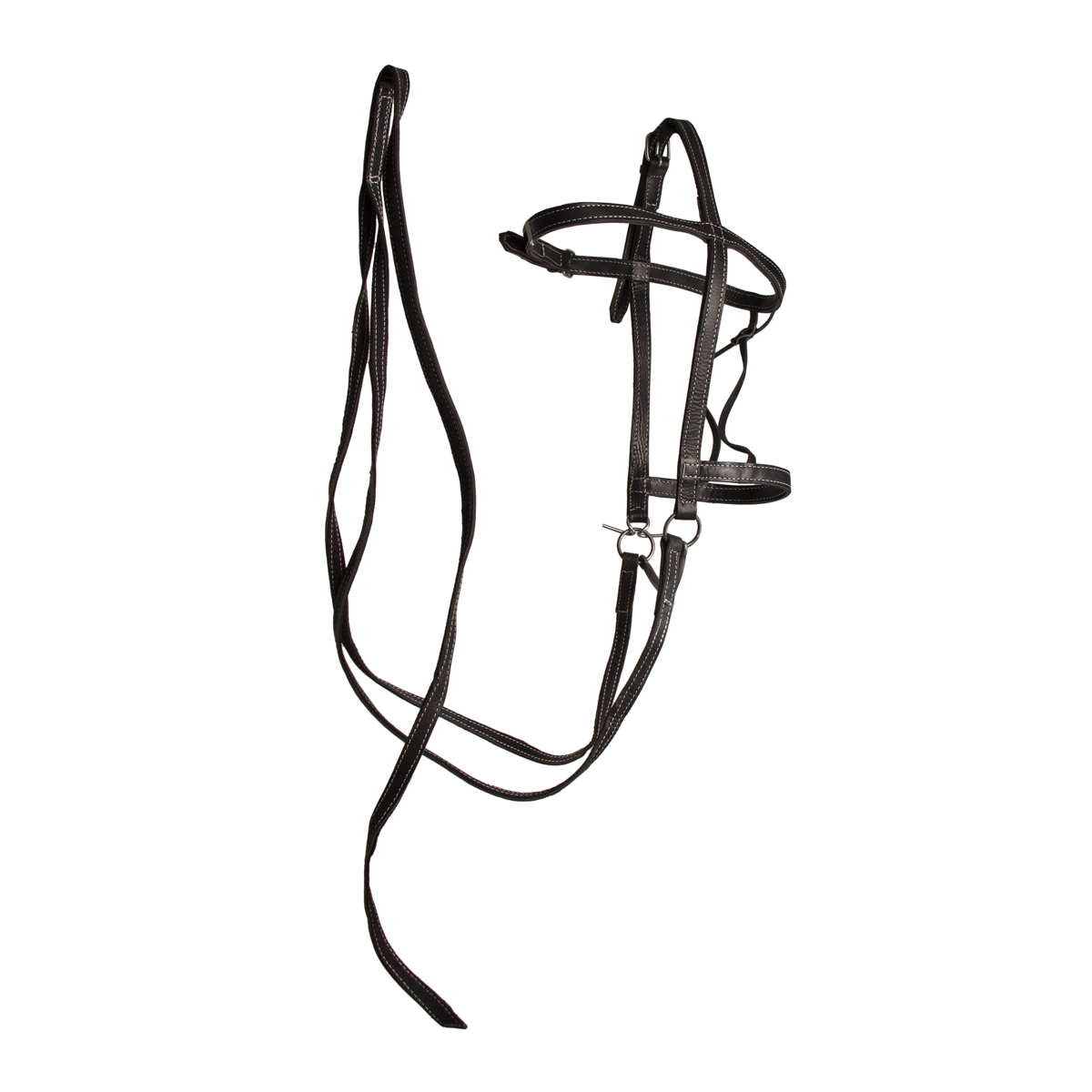 Узда рабочая из сыромяти. Состоит из суголовья, удил и поводьев. Трензель не снимается. Узда выполнена из двойной сшитой сыромятной кожи и капроновой ленты, вшитой между слоями кожи.