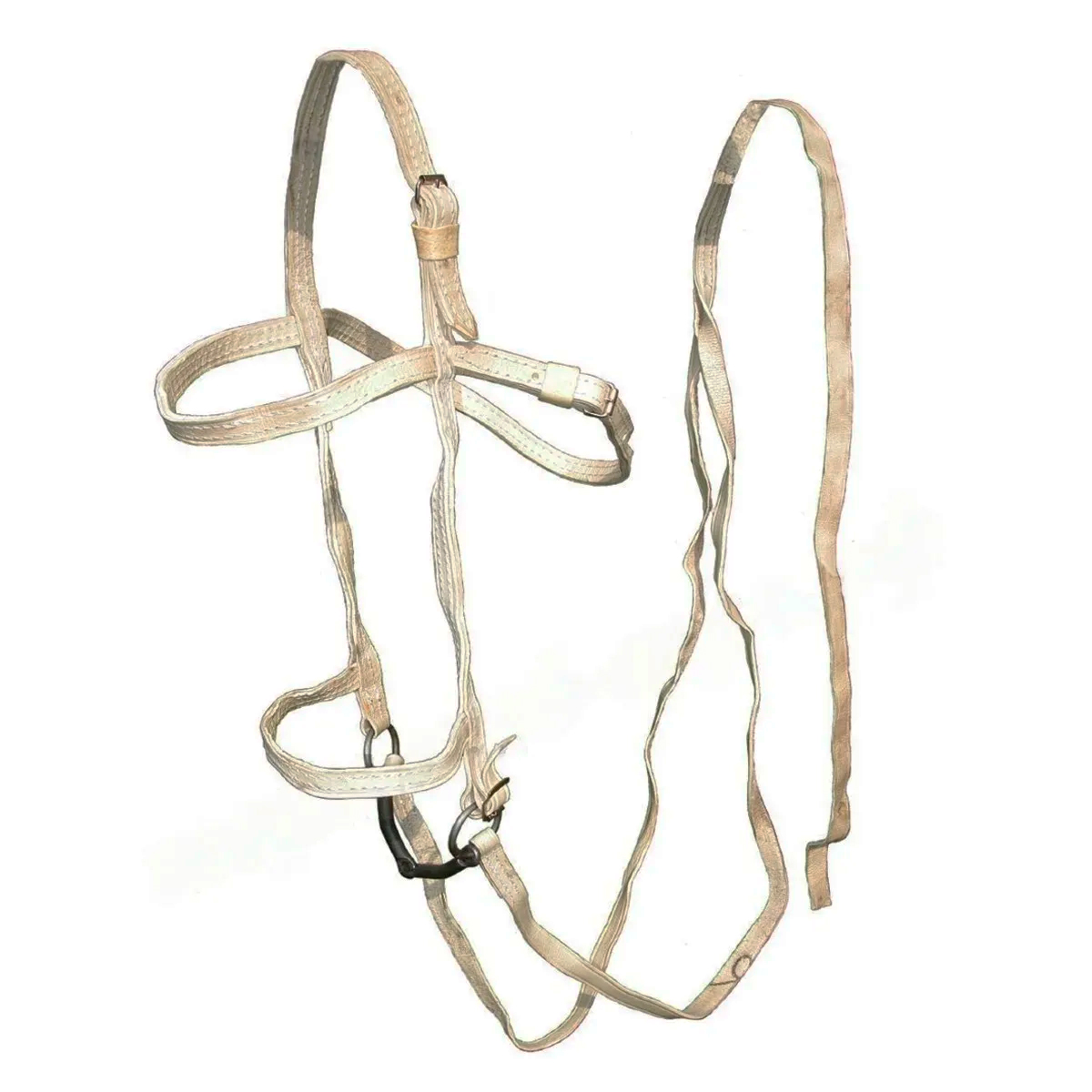 Узда рабочая из сыромяти. Состоит из суголовья, удил и поводьев. Трензель не снимается. Узда выполнена из двойной сшитой сыромятной кожи и капроновой ленты, вшитой между слоями кожи.