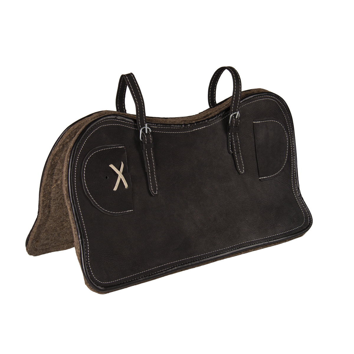Спина лошади нуждается в надежной и аккуратной защите. Даже правильно подобранное седло может травмировать кожу на спине лошади. Для защиты от таких повреждений была придумана специальная плотная подкладка из войлока - потник. Потник обязательно используют в качестве подкладки между седлом и спиной лошади. Он не только защищает спину лошади от повреждений, но еще и обеспечивает вентиляцию между седлом и спиной. К седлу потник крепится при помощи специальных петель. Основой потника является плотный слой шерстяного, натурального войлока, сверху покрытого натуральной кожей высокого качества.