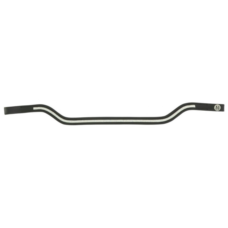 Черный кожаный налобник, выполнен из высококачественной кожи. Крепится к уздечке, имеет оригинальную форму. Прошит контрастной белой строчкой.