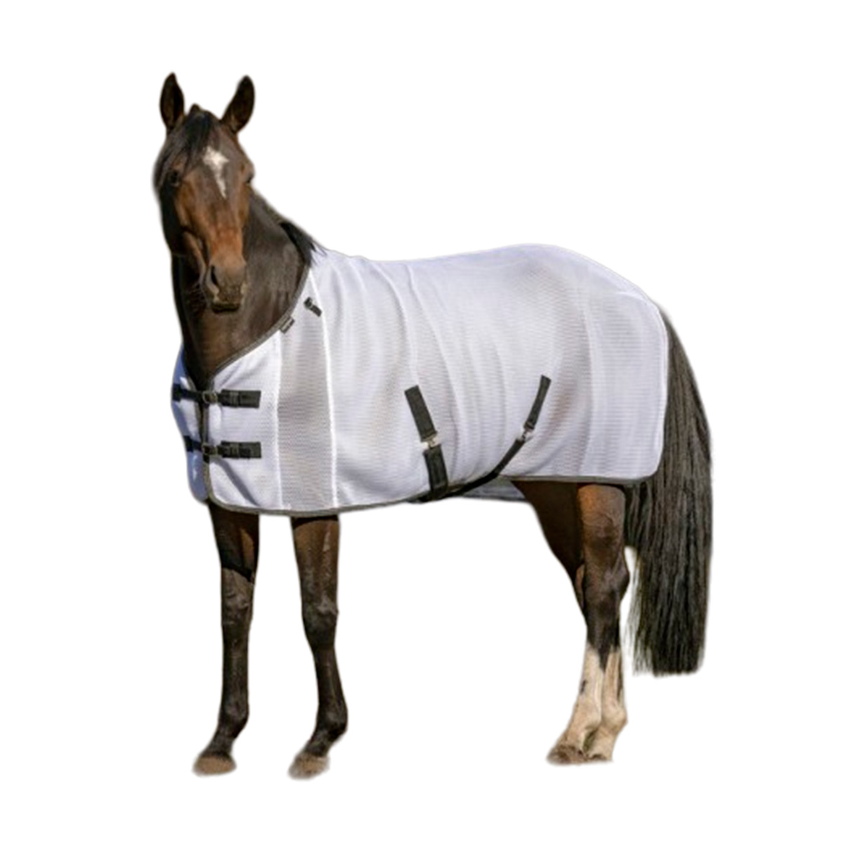 Летняя противомоскитная попона (Anti-Fly Rug) Изготовлена из полиэфирной сетки "3D" Спереди застёгивается на ремешки. Защищает туловище лошади от насекомых, также может использоваться для сушки. Материал попоны мягкий, легкий и дышащий, легок в уходе.