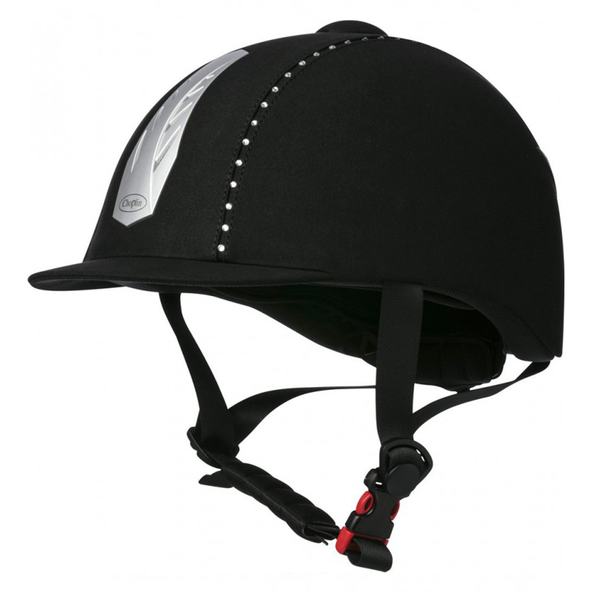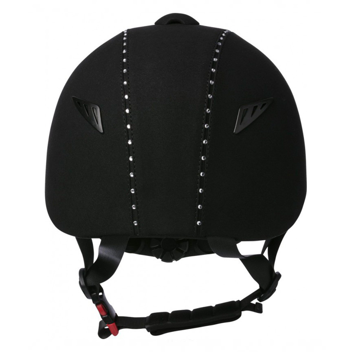 Регулируемый и практичный шлем (helmet) с хорошей вентиляцией будет незаменим для верховой езды, сделан из прочного материала. Корпус изготовлен из АBS-пластика, обладающего высокой устойчивостью к ударам и не теряющего своих свойств при экстремальных перепадах температур. Воздухопроницаемое внутреннее покрытие (подкладка) можно стирать при температуре 30 градусов С, после стирки оно легко фиксируется внутри шлема. Подбородный ремень оснащен надежным 3-х точечным креплением, быстроразъемным зажимом и специальной накладкой под подбородком для исключения возможности натирания. Мягкий козырек и весь корпус шлема покрыт искусственной замшей. Шлем украшен стразами. Благодаря системе регулирования возможно корректировать размер шлема в зависимости от сезона: зимой достаточно немного ослабить шлем, чтобы носить его с подшлемником.