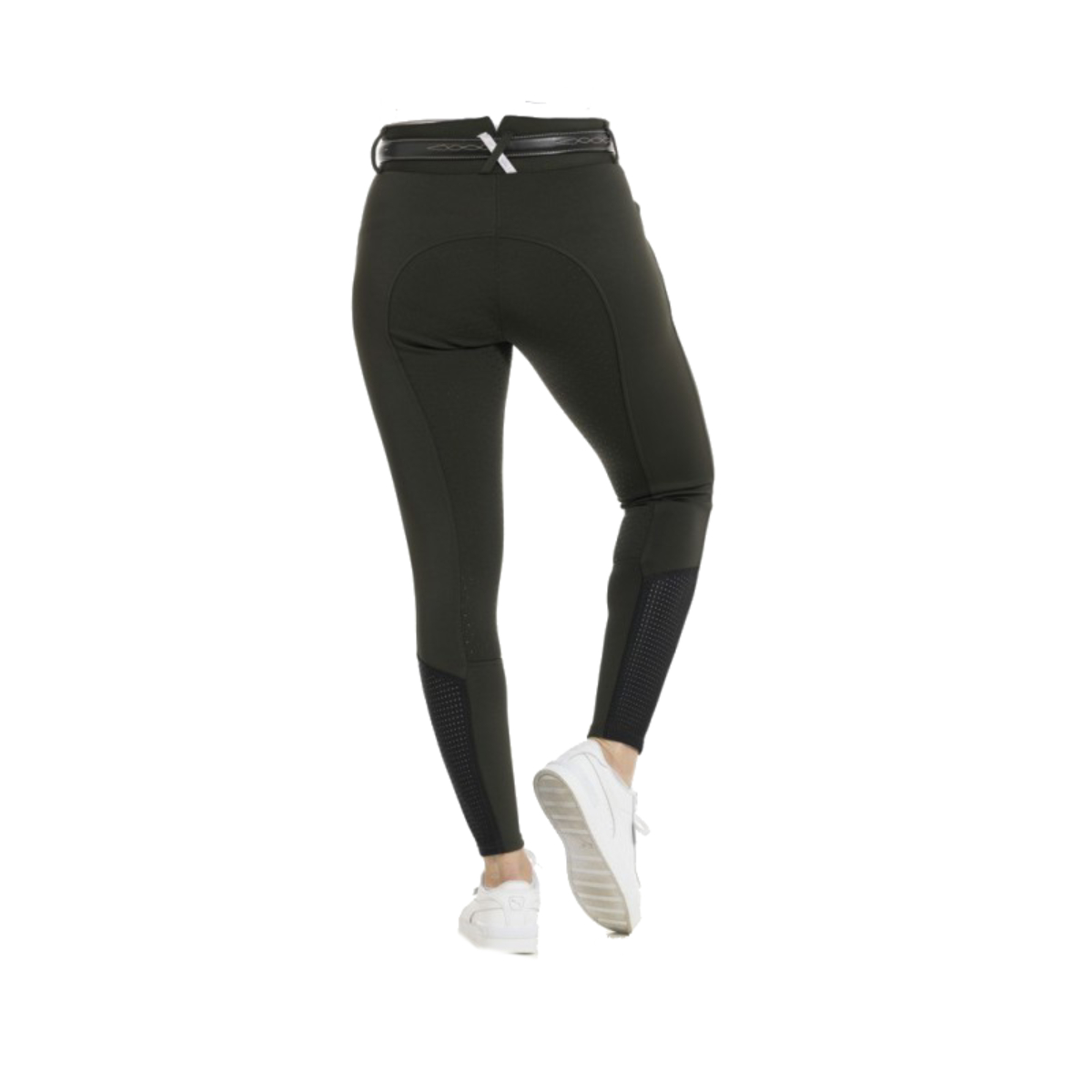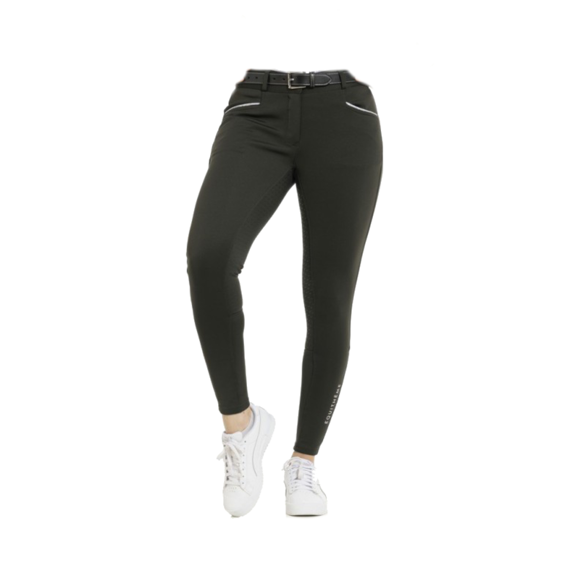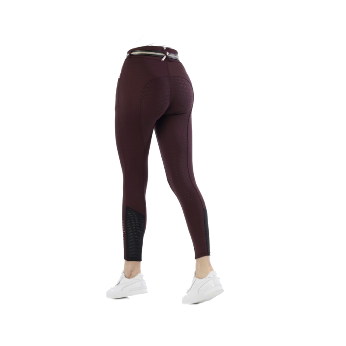 Женские бриджи с полной силиконовой леей (Riding Breeches with Silicone Patch). Силиконовая лея обеспечивает наибольшую фиксацию в седле. На поясе петли для ремня. Застёгиваются на молнию и брючный крючок. Два передних набедренных кармана, украшенных прострочкой контрастного цвета. В области щиколотки имеются перфорированные эластичные вставки для удобства одевания.