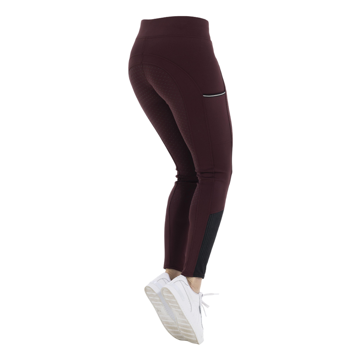 Леггинсы с полной силиконовой леей (Breeches with Full Silicone Patch). Леггинсы EQUITHEME Brigitte Pull-on с полной силиконовой леей изготовлены из эластичной и дышащей ткани. Ткань EQUITHEME Brigitte Pull-on быстро впитывает и отводит влагу, гарантируя отличную воздухопроницаемость. Силиконовая лея предполагает отстутствие лишних швов в зоне колен и обеспечивает наибольшую фиксацию в седле. Чтобы оставаться на связи даже во время езды, на правой ноге расположен карман для телефона. В области щиколотки эластичная вставка.