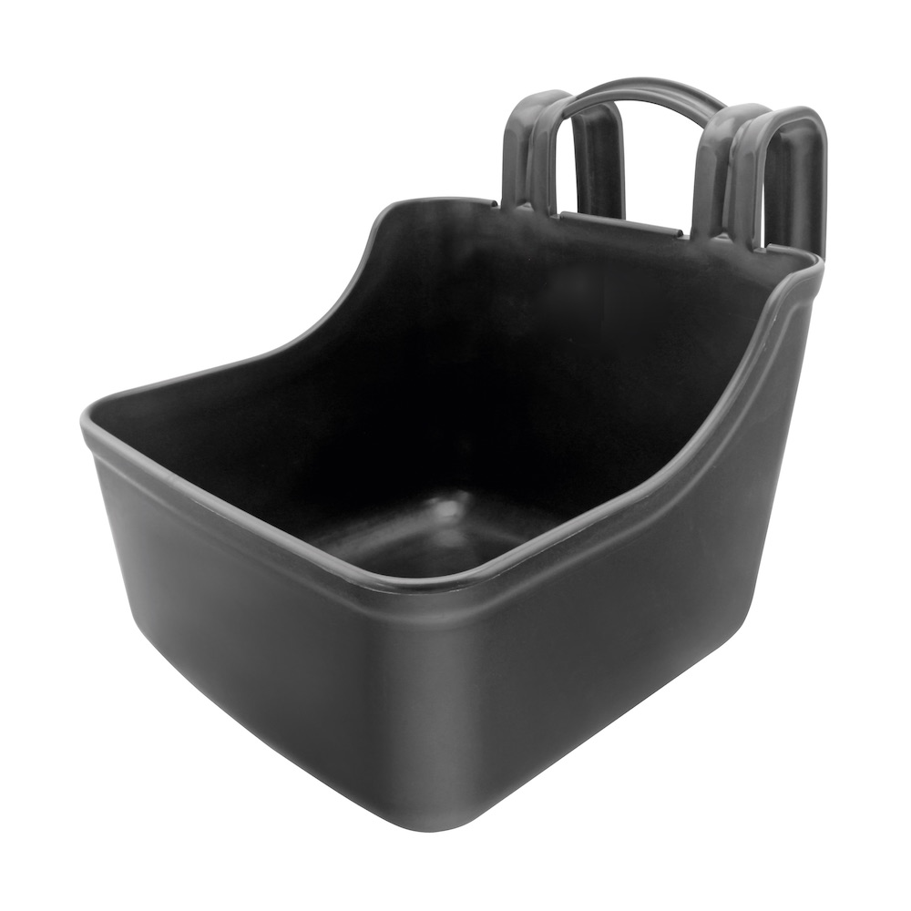 Компактная кормушка из пищевого полипропилена с крючками для навешивания на ограждения и перегородки денника. Перемычка между крючками служит ручкой и удобна при перемещении кормушки. Благодаря этому ее используют не только в конюшне, но и на выездных турнирах. Для легкой очистки дно имеет закругленные углы и гладкую поверхность, можно мыть любыми средствами для ферм. Одна из самых легких кормушек - всего 1,15 кг. Пищевой пластик обеспечивает безопасность корма что важно для племенных, породистых животных. Очень прочный пластик - гарантия долгого срока службы.