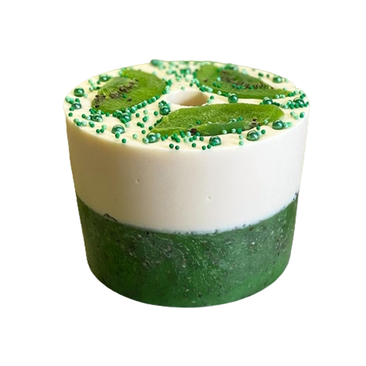 Состав: сахар, кокосовый сироп, сироп из киви, семена чиа, цукаты из киви, кукурузный крахмал, сахарная посыпка (сахар, кукурузный крахмал, натуральные красители), витамины A, B, C, D, E.