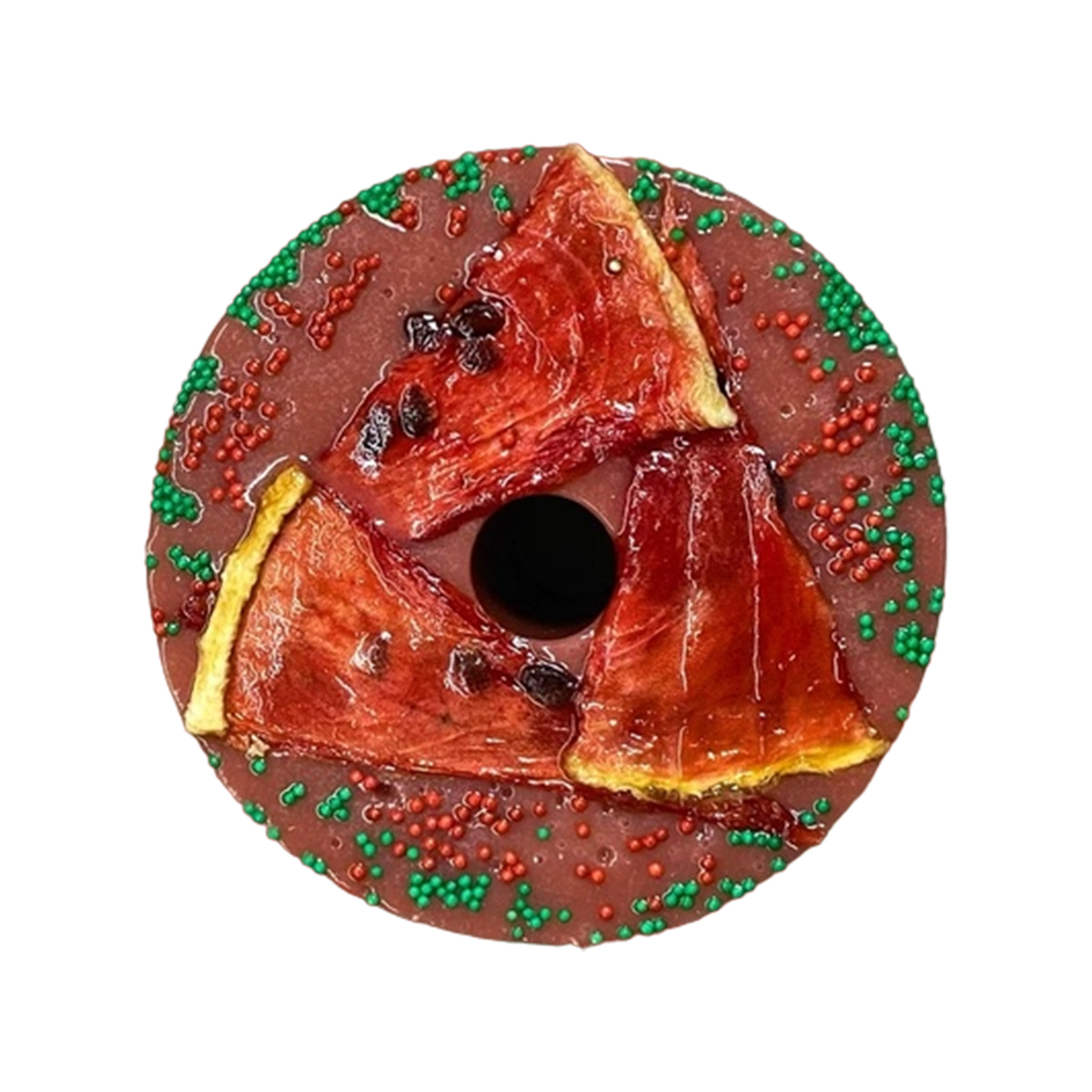 Без овса и прочих добавок, конфета сварена на основе арбузного сиропа и украшена арбузными чипсами