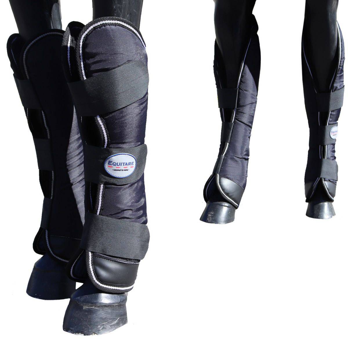 Транспортные ногавки (Shipping Boots) обеспечат безопасность лошади во время переезда. Ногавки высокие, поэтому защитят ноги от венчика до скакательного или запястного сустава. При этом мягкая подкладка из искусственного меха обеспечит комфорт во время длительного переезда. Имеют пенопластовый наполнитель, толщиной 12 мм. Легко снимаются и одеваются благодаря трем широким застежкам-липучкам.