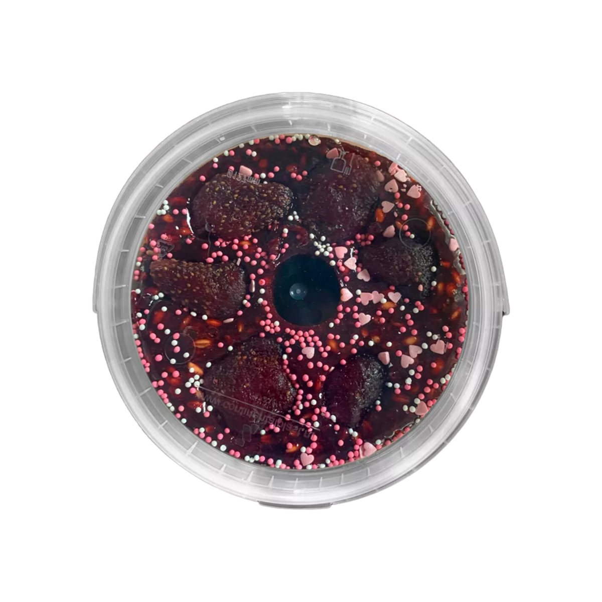 Состав: глюкозный сироп, декстроза, сироп клубничный, зерно овса, ячменя, клубника вяленая, кондитерская посыпка, лимонная кислота.