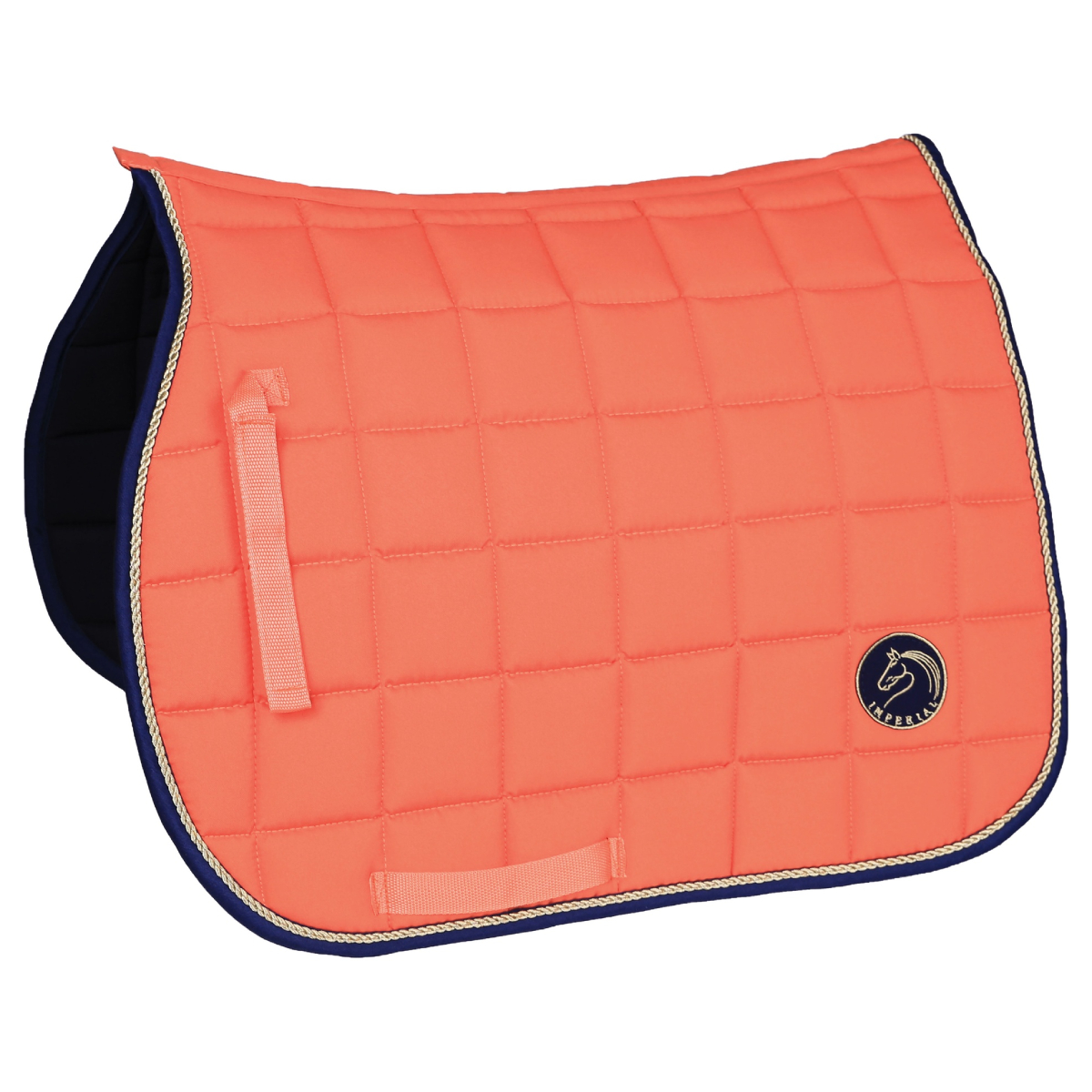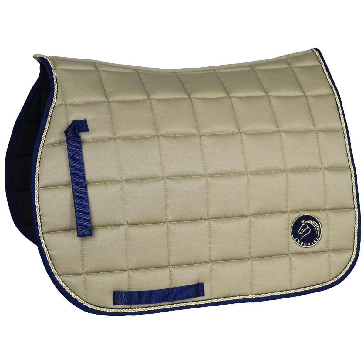 Универсальный вальтрап (All-Purpose Saddle Pad) анатомической формы. Дышащая подкладка из 100%-го хлопка гарантирует превосходное поглощение влаги. Наполнитель из поролона и синтепона делает вальтрап объемным, что очень важно для амортизации. Украшен золотым витым шнуром, шевроном и контрастной окантовкой. Вальтрап хорошо держит форму и легок в уходе. Крепится на липучки.