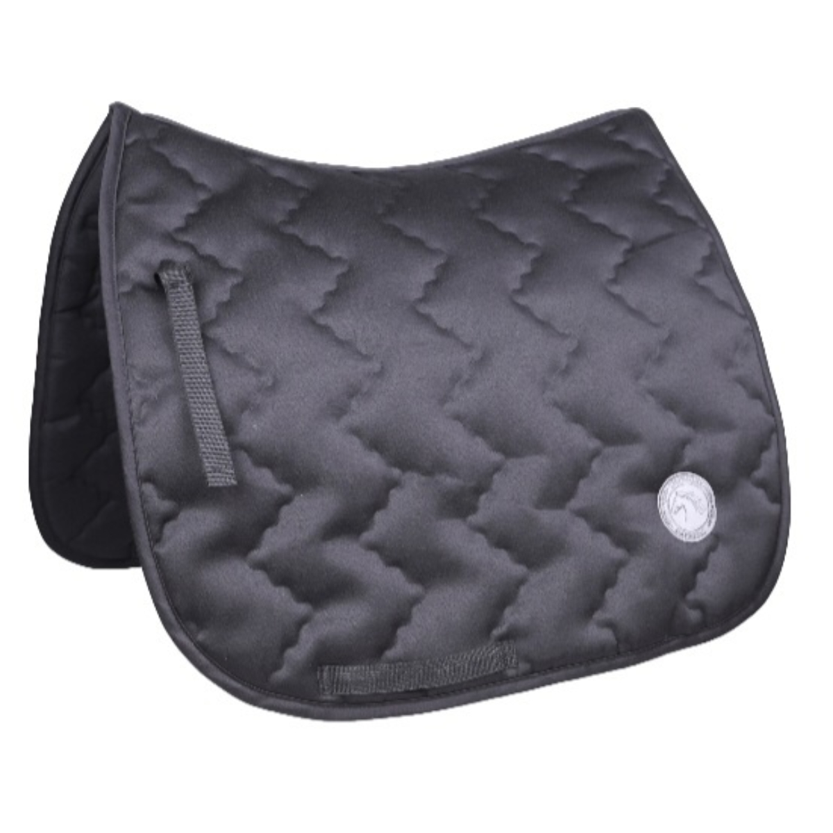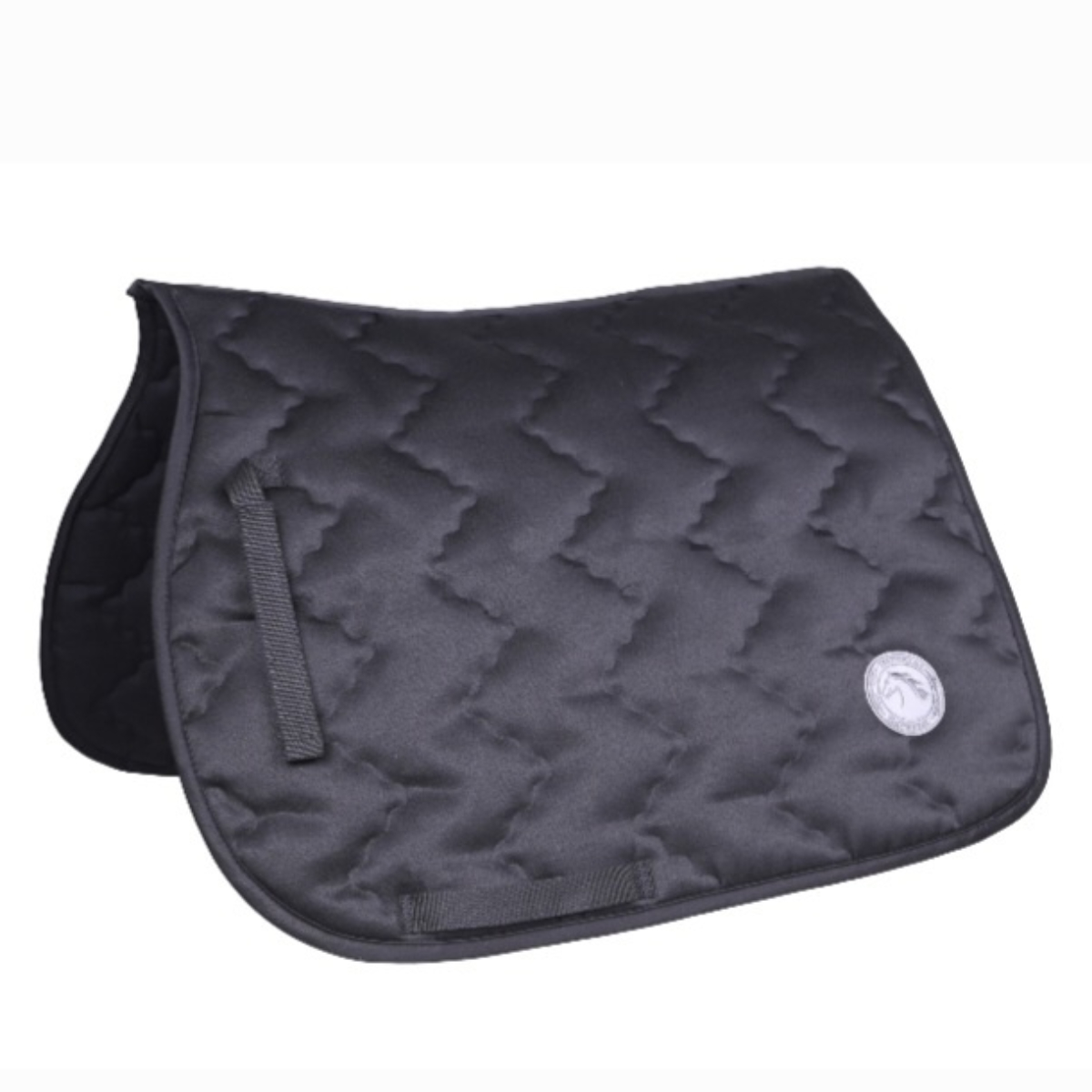 Вальтрап (Saddle Pad) анатомической формы. Наполнитель из поролона и синтепона делает вальтрап объемным, что очень важно для амортизации. Вальтрап из ткани с легким блестящим эффектом, украшен шевроном. Хорошо держит форму и легок в уходе. Крепится на липучки.