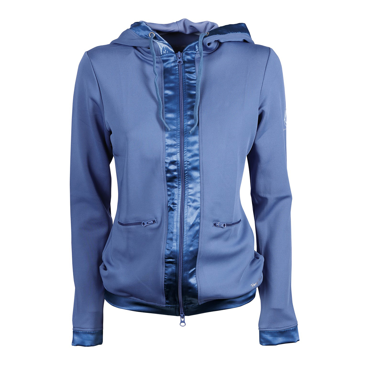 Элегантная толстовка (Jacket) с капюшоном для верховой езды. С 2-полосной молнией и двумя карманами на молнии, красивой отделкой вдоль молнии и логотипом на левом рукаве.