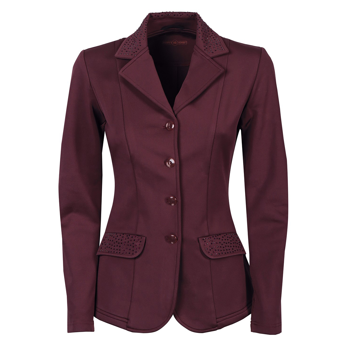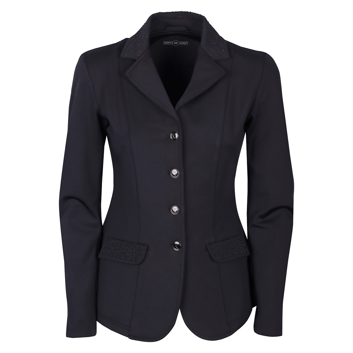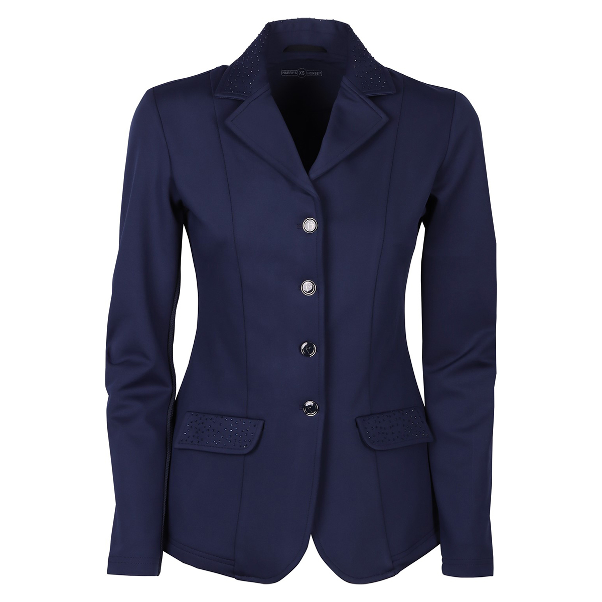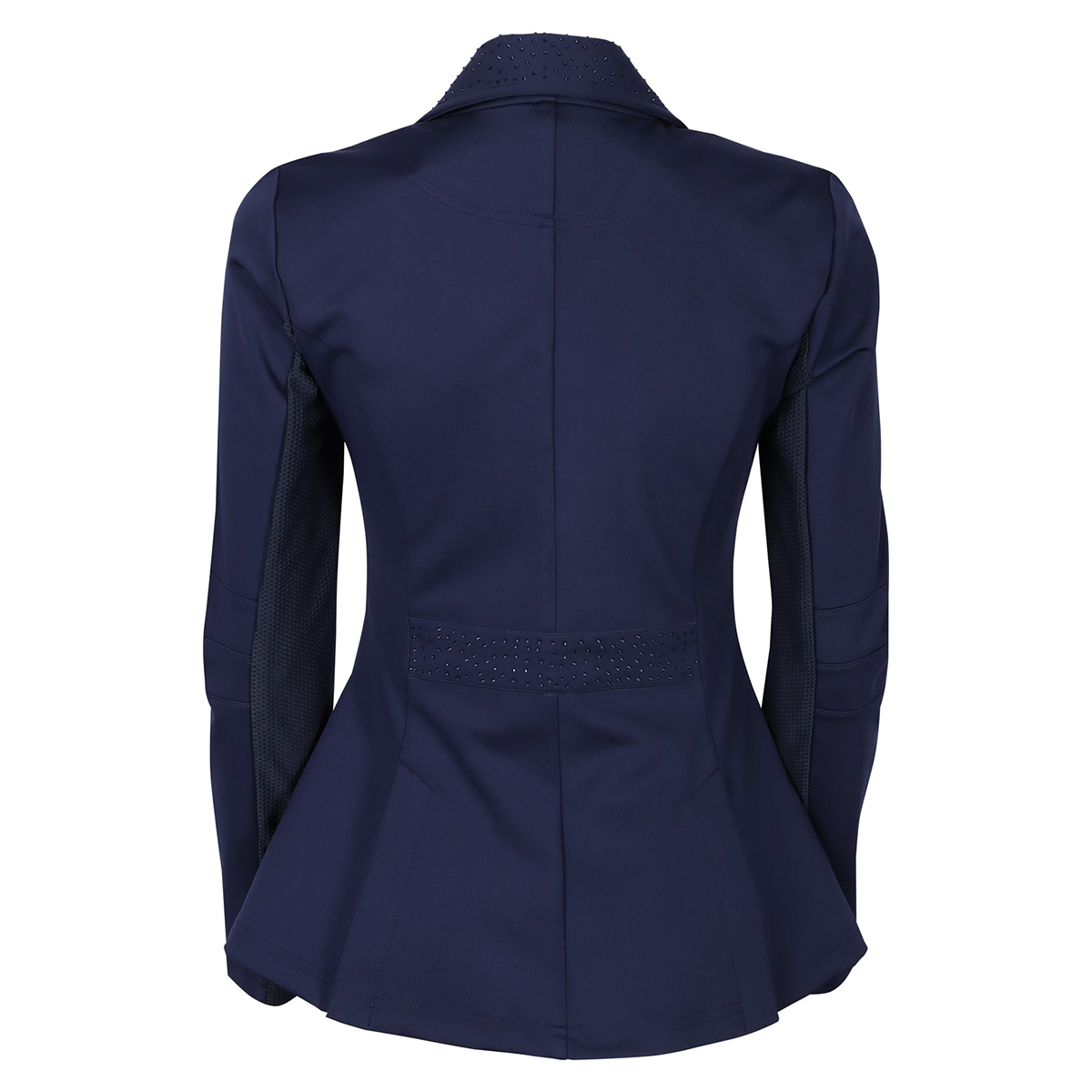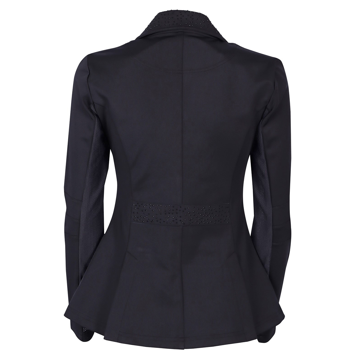 Элегантный дамский редингот для выступлений (Competition Jacket for Women) приталенного кроя. Выполнен из высококачественного стрейч-материала. Застегивается на молнию и пуговицы. Ворот, карманы и декоративная вставка на спинке украшены стразами. Внутренняя часть рукавов выполнена из сетчатого материала, что обеспечивает хорошую вентиляцию.