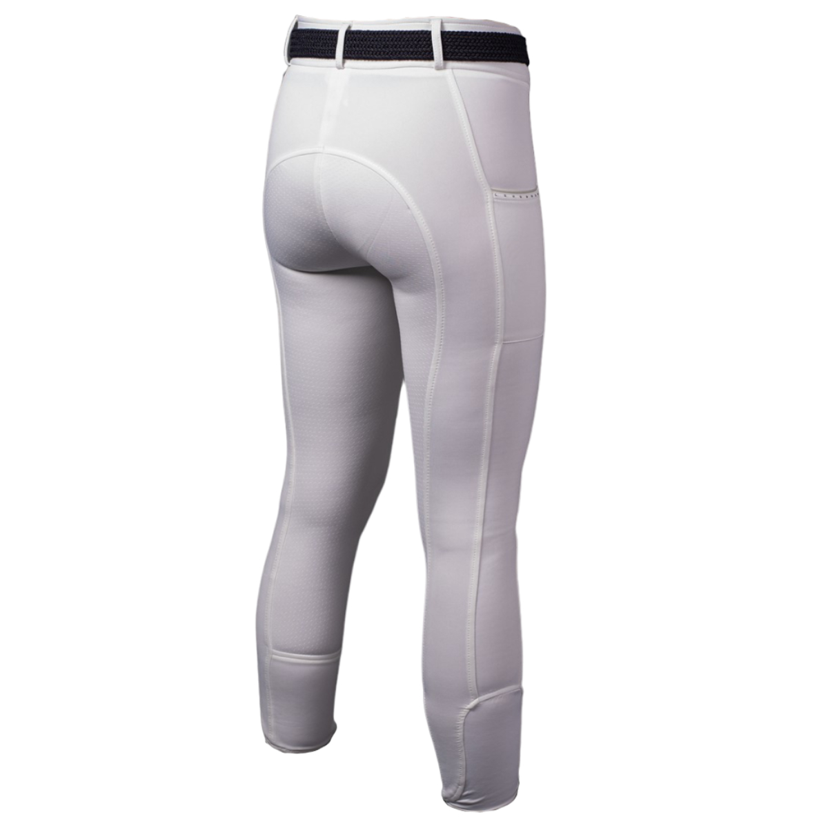 Леггинсы с полной силиконовой леей (Breeches with Silicone Patch). Силиконовая лея предполагает отстутствие лишних швов в зоне колен и обеспечивает наибольшую фиксацию в седле. Изготовлены из чрезвычайно удобной и эластичной ткани. Широкий пояс для дополнительного комфорта. Два набедренных кармана, украшенных стразами. В области щиколотки имеется эластичная сетчатая вставка для удобства надевания.
