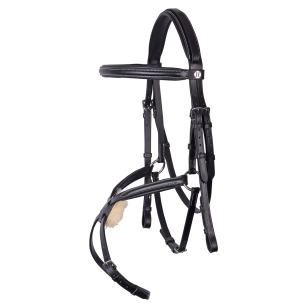 Оголовье из натуральной кожи с мексиканским капсюлем (Cross Noseband Bridle). Фурнитура серебристого цвета из нержавеющей стали. Выполнено из качественной кожи, украшено контрастной строчкой.