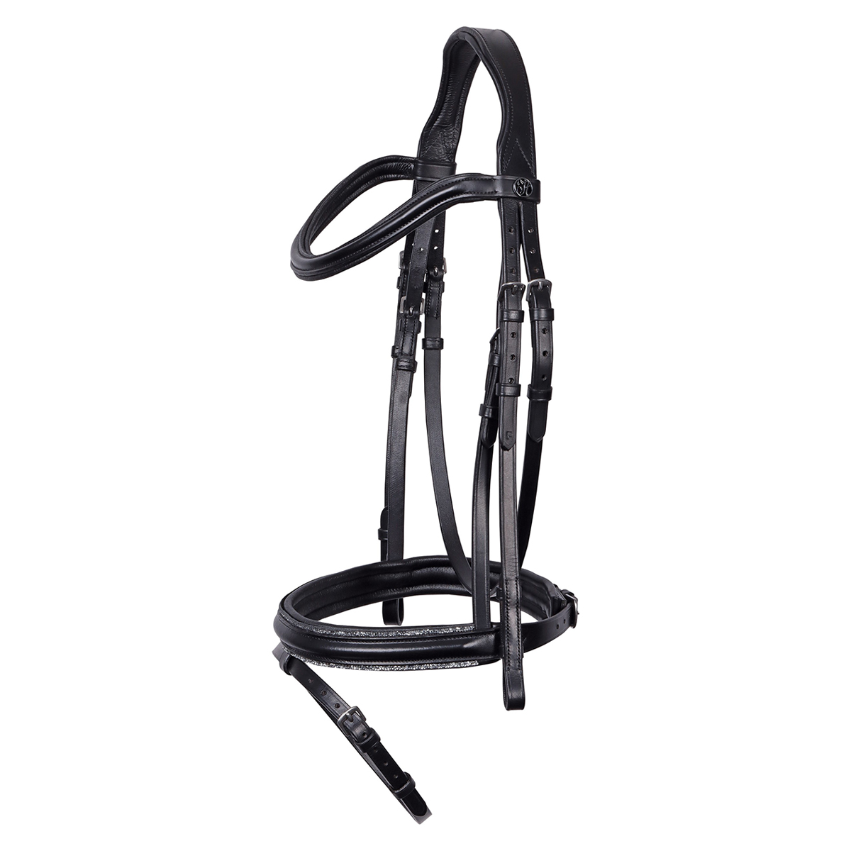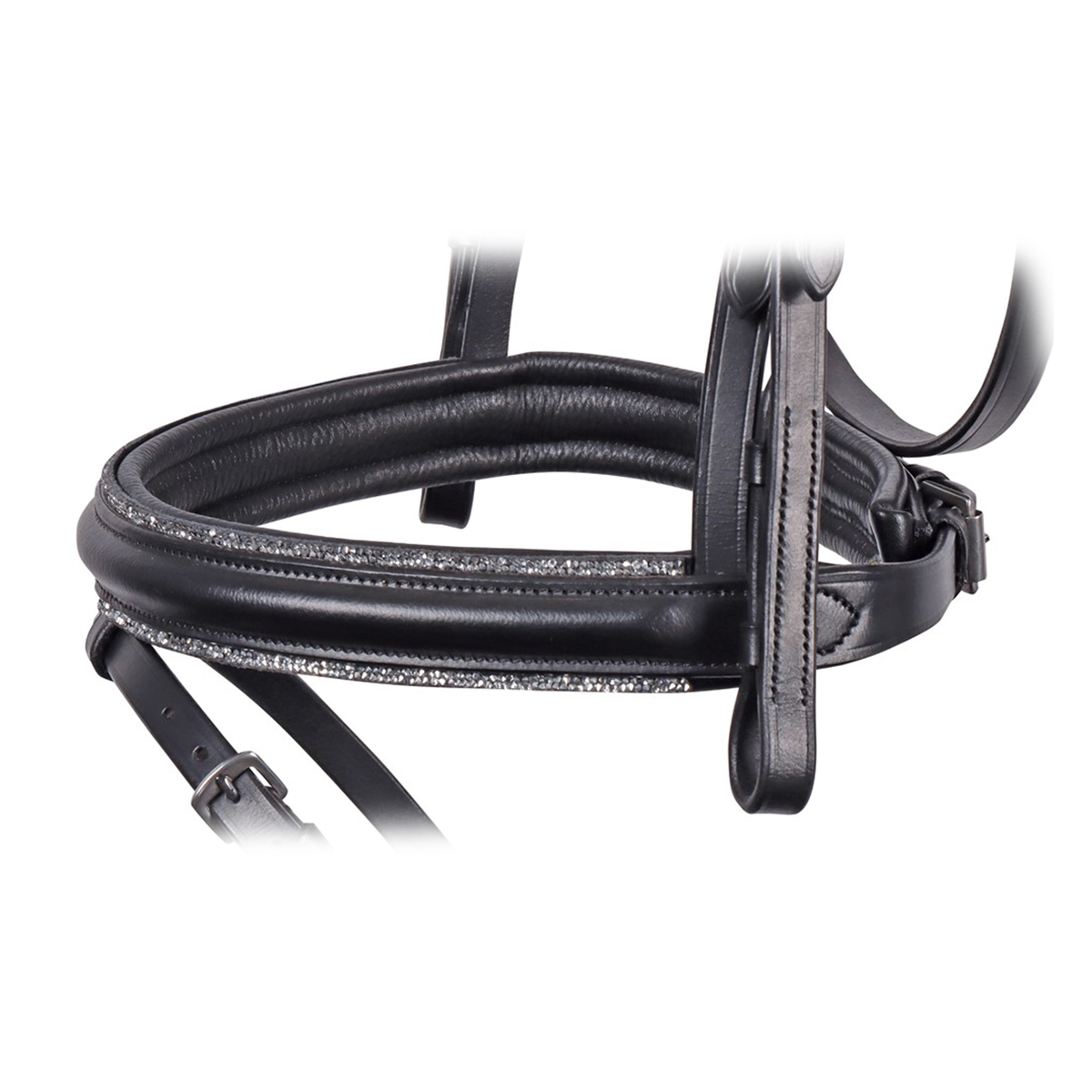 Оголовье из натуральной кожи (Leather Bridle). Особенность этого оголовья в том, что капсюль украшен сияющими стразами. Мягкие подложки на капсюле, налобном и затылочном ремнях, делают уздечку комфортной даже для чувствительных лошадей. Затылочный ремень анатомической формы.