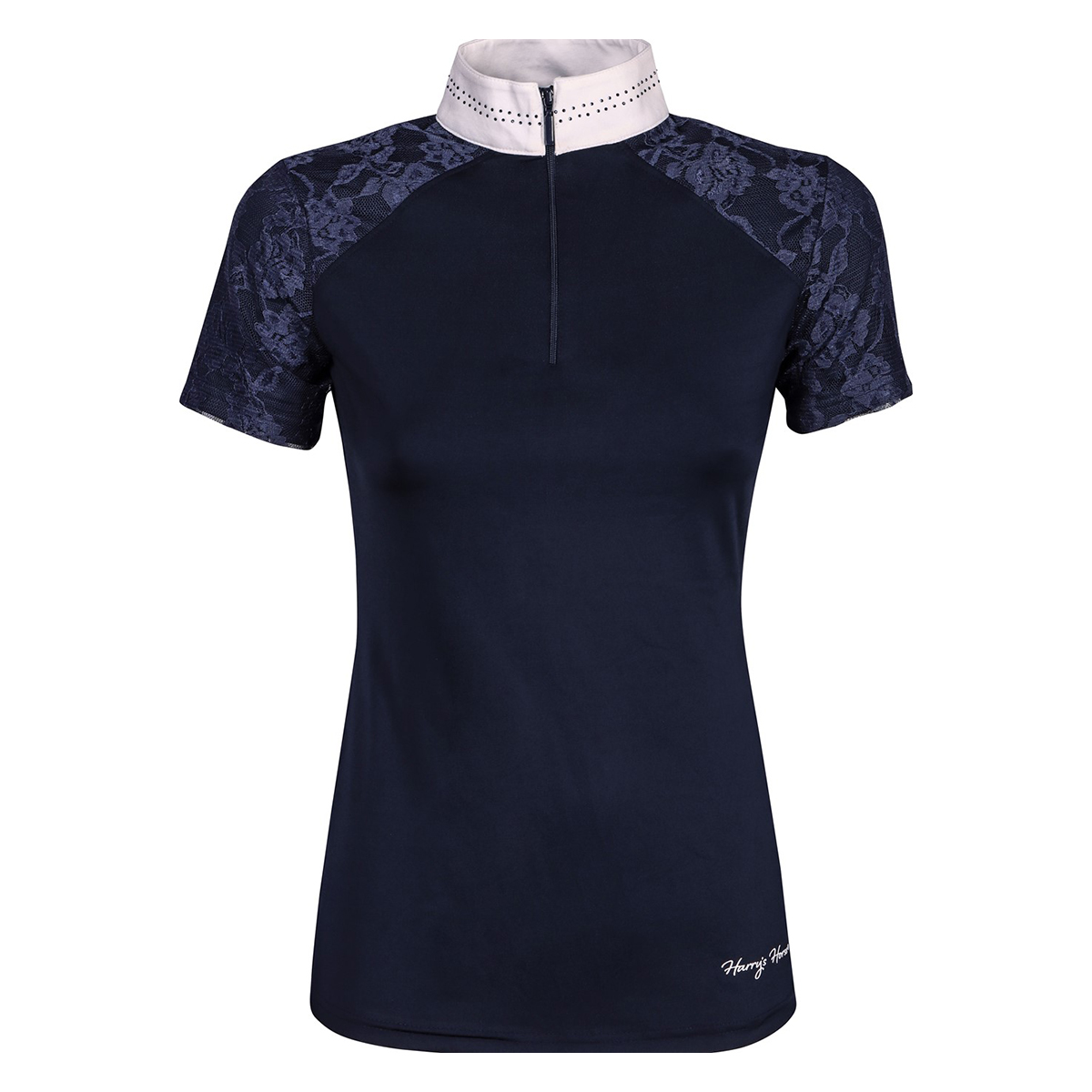 Тонкая блузка для выступлений (Competition Shirt) с приталенным силуэтом, коротким рукавом и воротничком-стойкой. Выполнена из эластичной лёгкой дышащей ткани. Рукава выполнены из тонкого эластичного кружева.