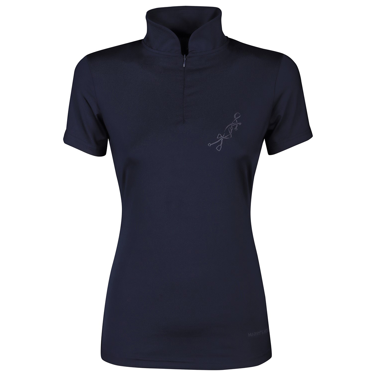 Тонкая блуза для выступлений (Competition Shirt) с приталенным силуэтом, коротким рукавом и воротничком-стойкой. Выполнена из эластичной лёгкой дышащей ткани. На воротничке застегивается на молнию. Небольшой логотип на груди.