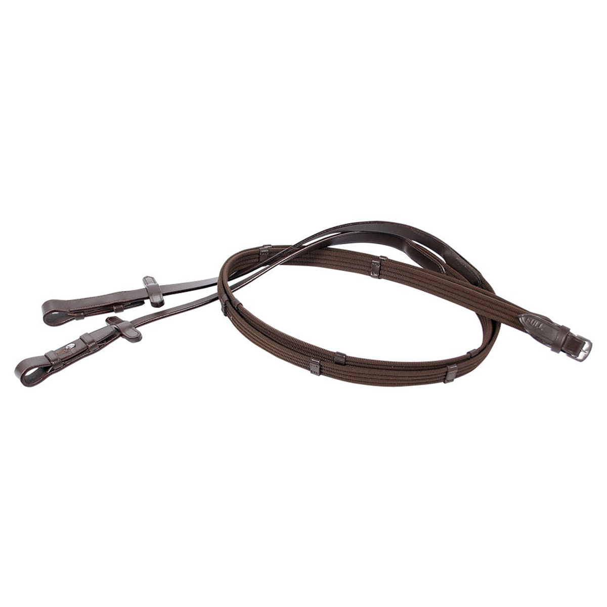 Прочный тесьмяный повод с кожаными ограничителями (Web reins) и фурнитурой из никелированной стали.