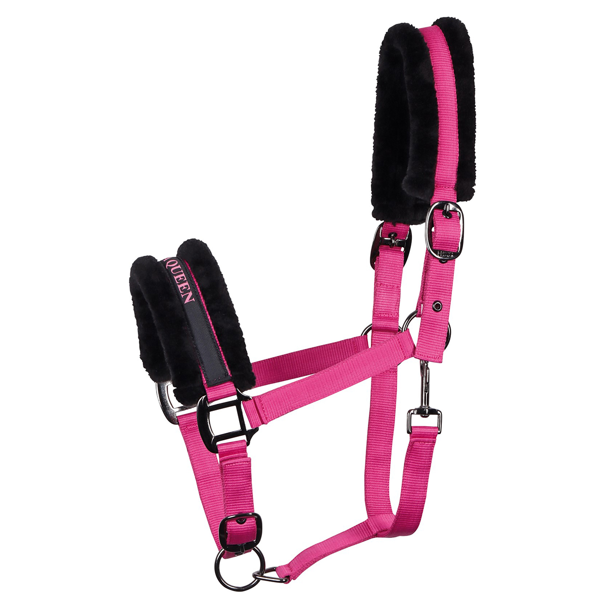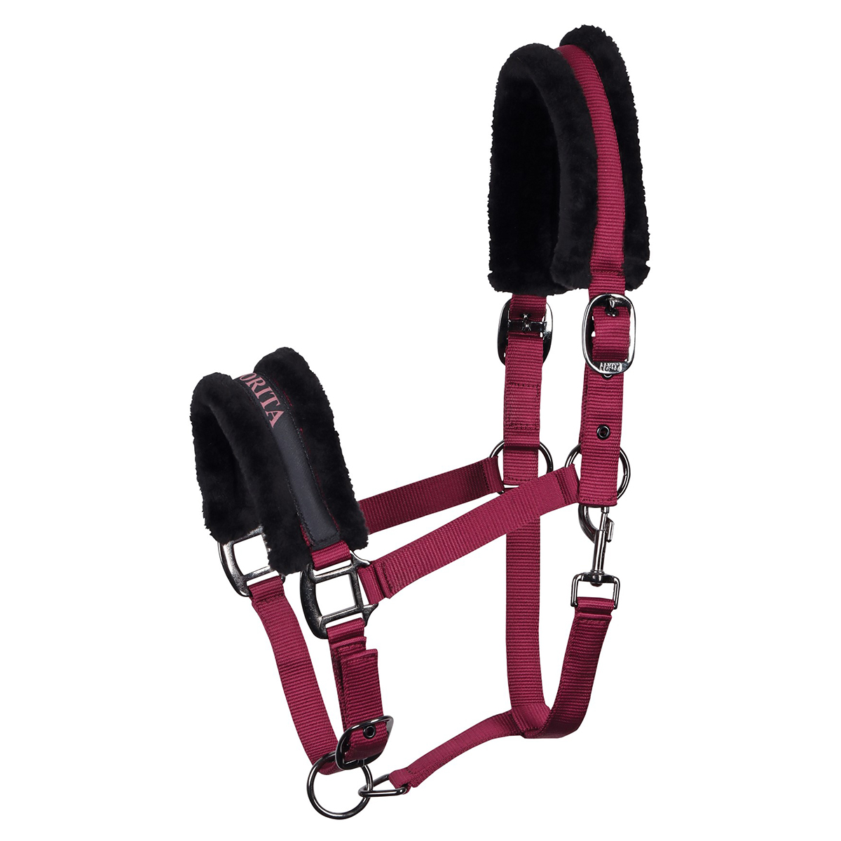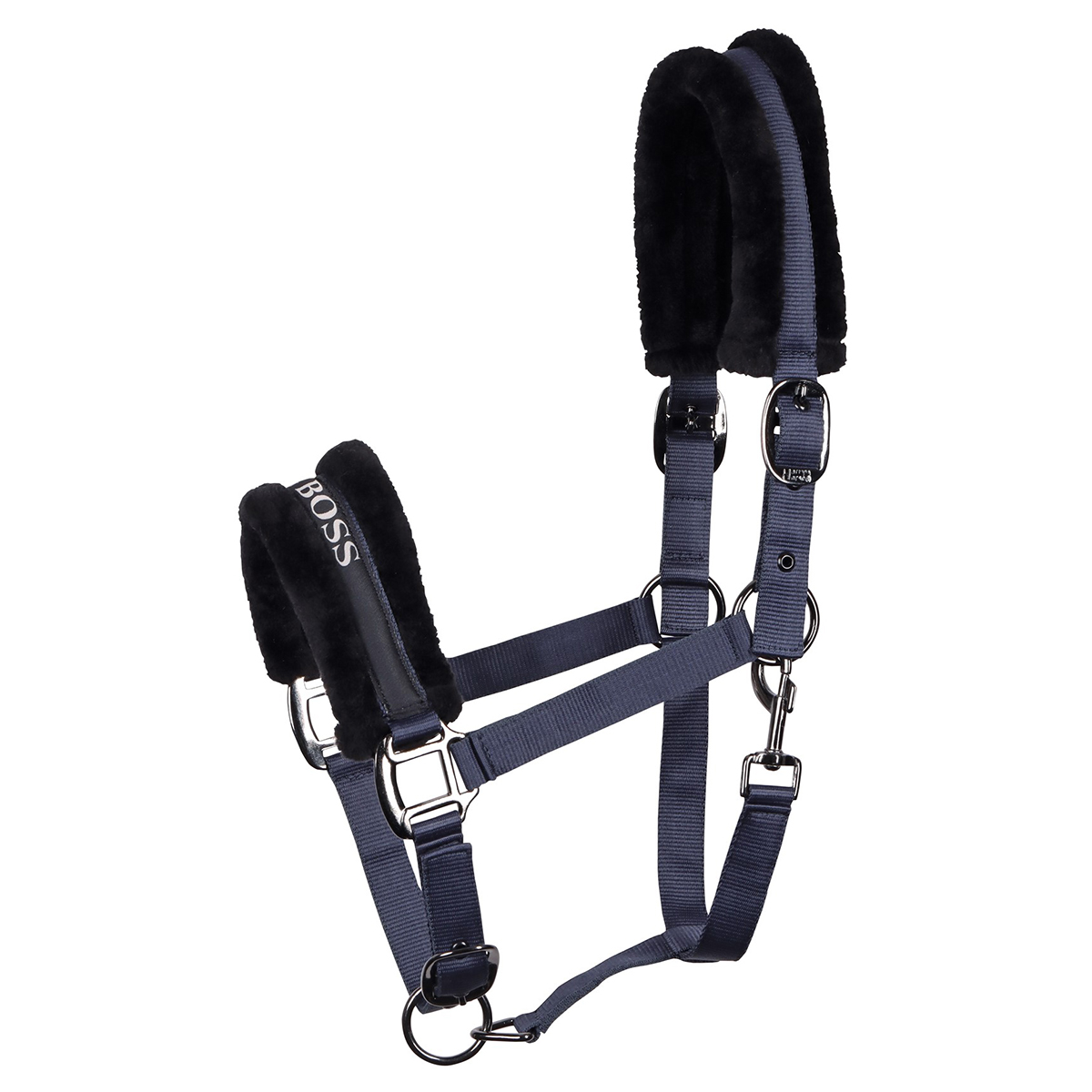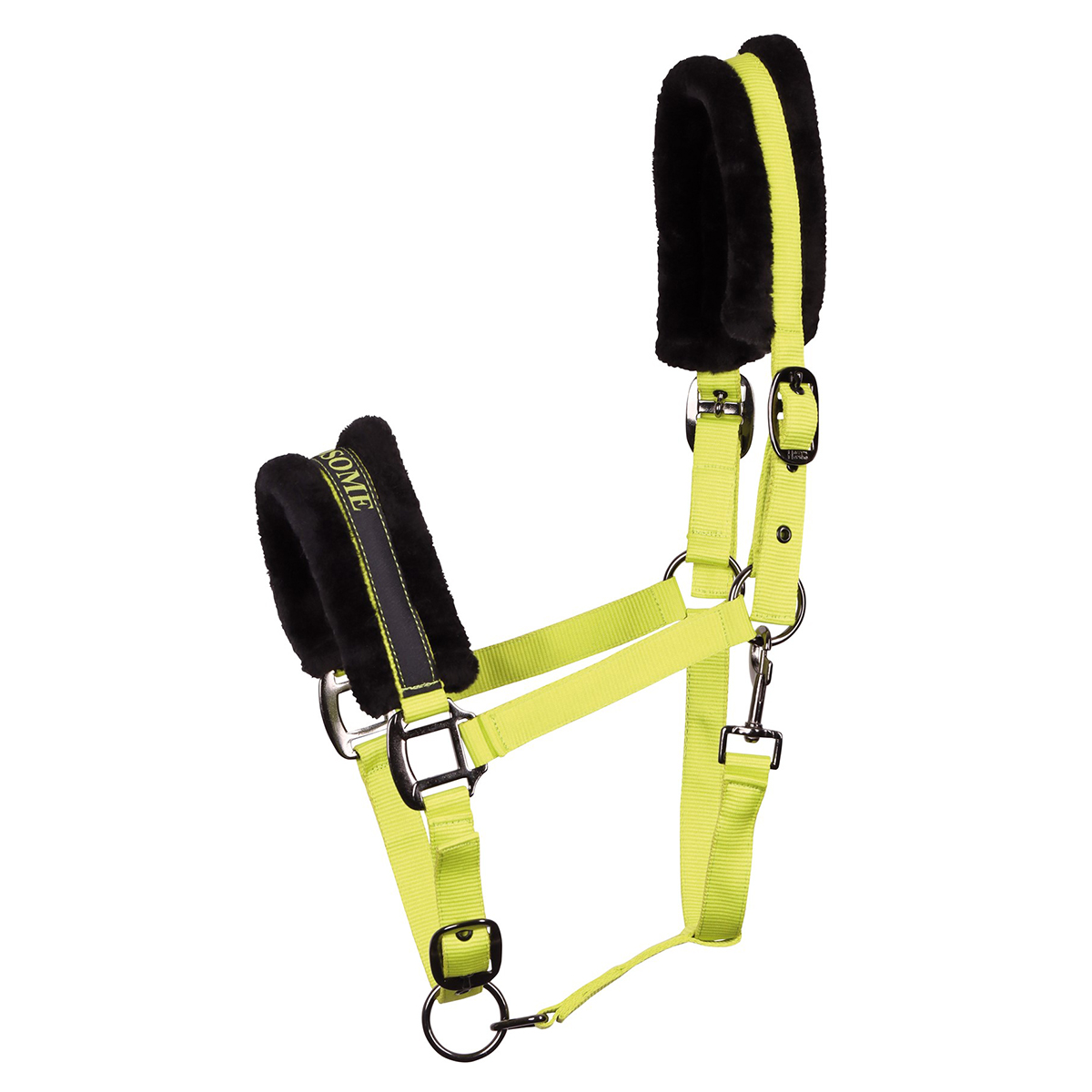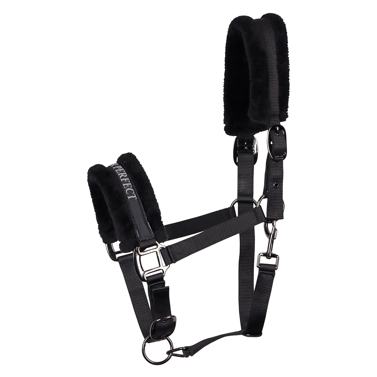 Подкладка из мягкого искусственного меха черного цвета. Регулируется с обеих сторон. Меховые подложки на носовом и затылочном ремнях предотвращают натирание. Подбородный и затылочный ремни регулируются, что обеспечивает идеальную посадку на голове лошади. Качественный плотный материал недоуздка и прочная металлическая фурнитура продлят срок службы недоуздка. Застегивается на карабин, что упрощает процесс одевания.
