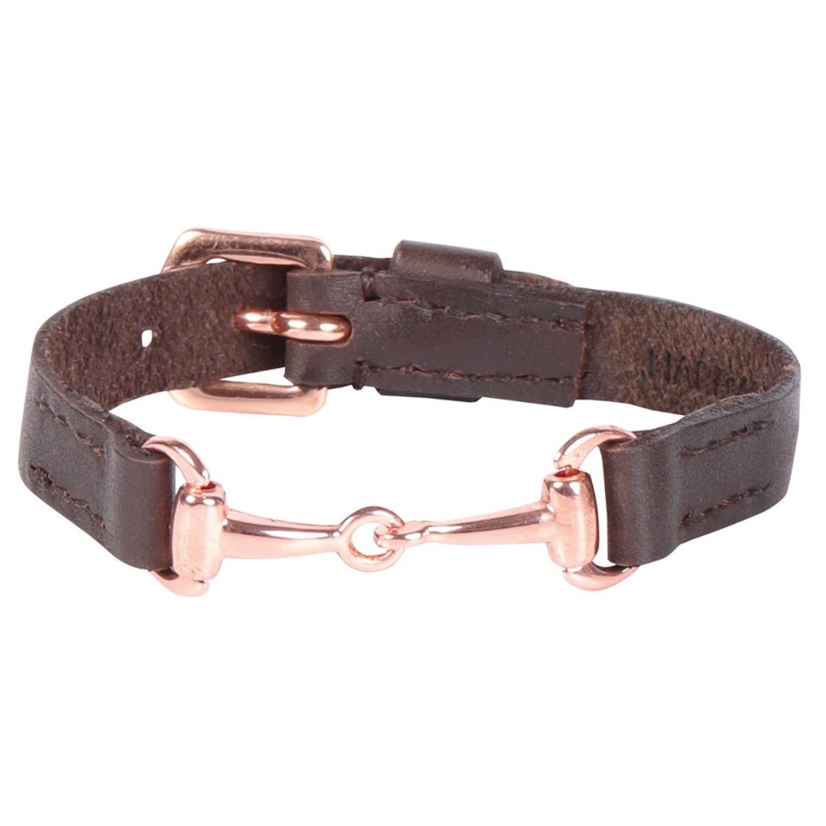 Шикарный кожаный браслет с фурнитурой цвета розового золота. Элегантная прострочка из кожи, декоративный трензель, металлическая пряжка с возможностью регулировки длины ремешка. Длина 24 см.