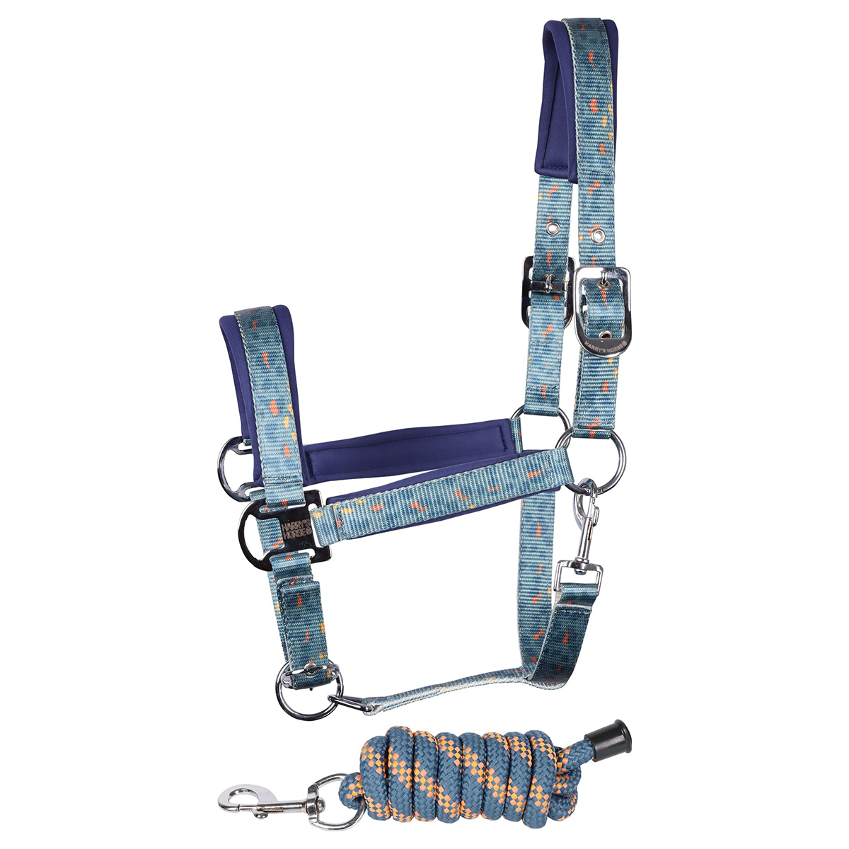 Удобный недоуздок (Halter) из прочного полиэстера, с необычным принтом. Ремни на затылке и переносице регулируются, что обеспечивает идеальную посадку на голове лошади. Также затылочный и носовой ремни имеют мягкую неопреновую подложку, что предотвращает натирание. В комплекте чумбур на карабине.
