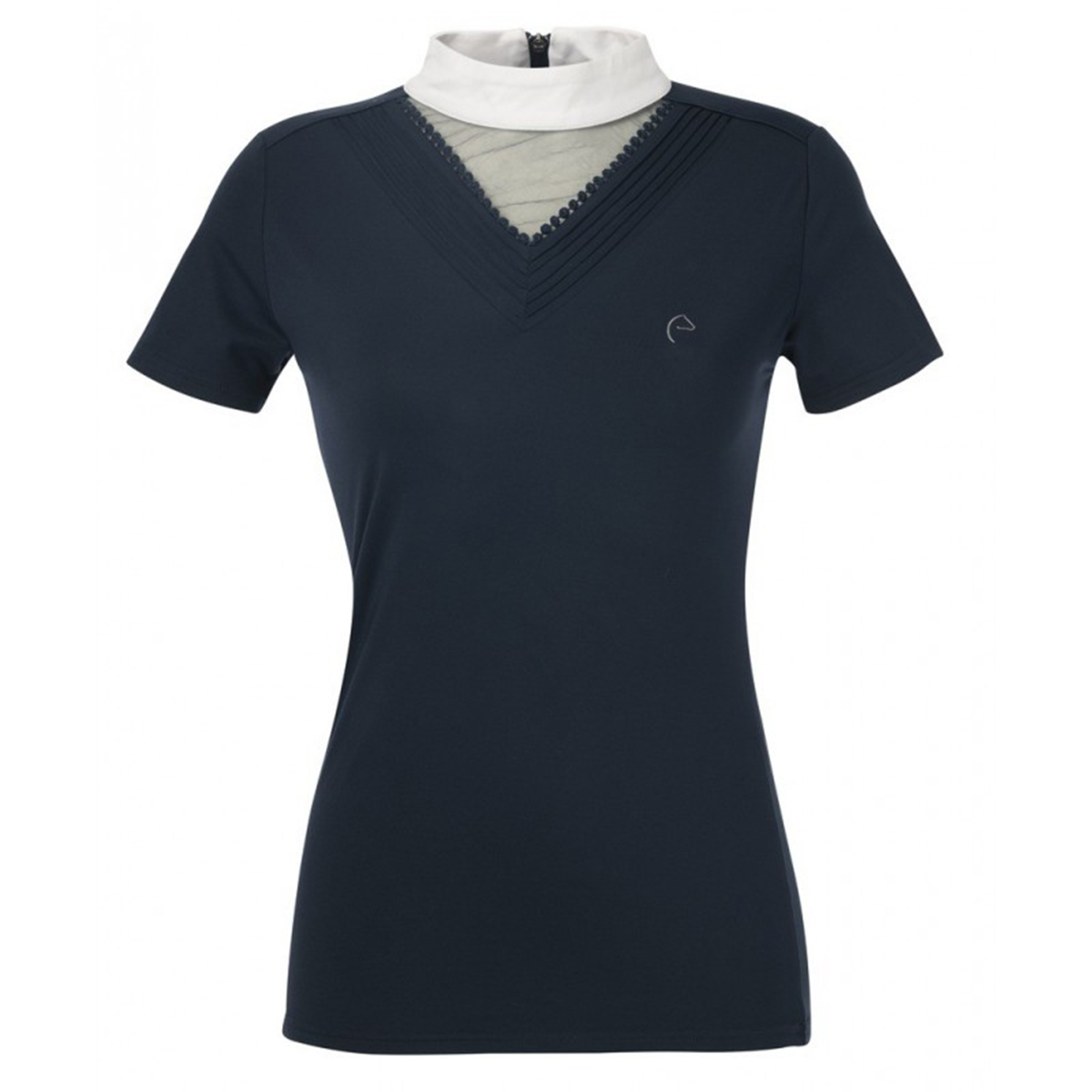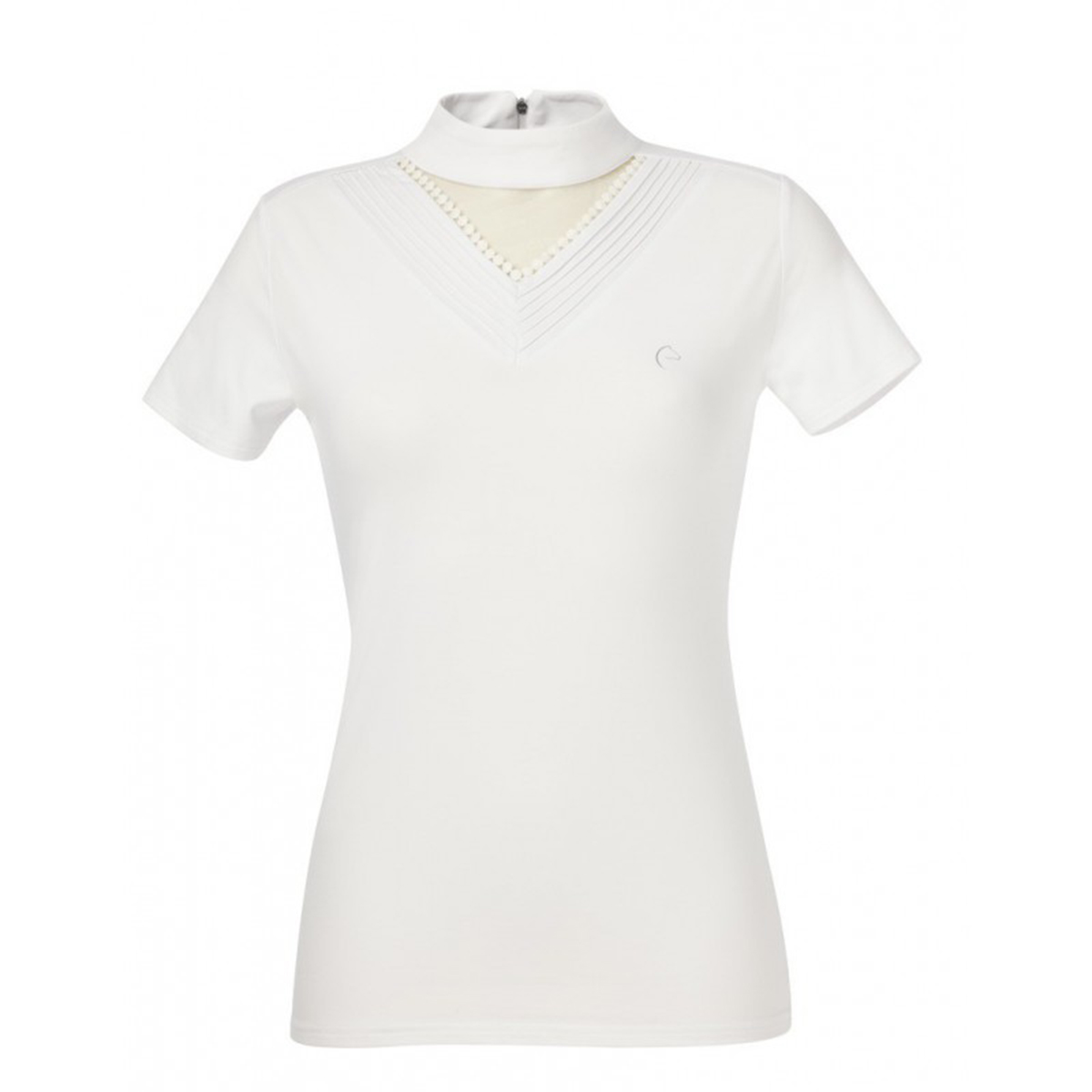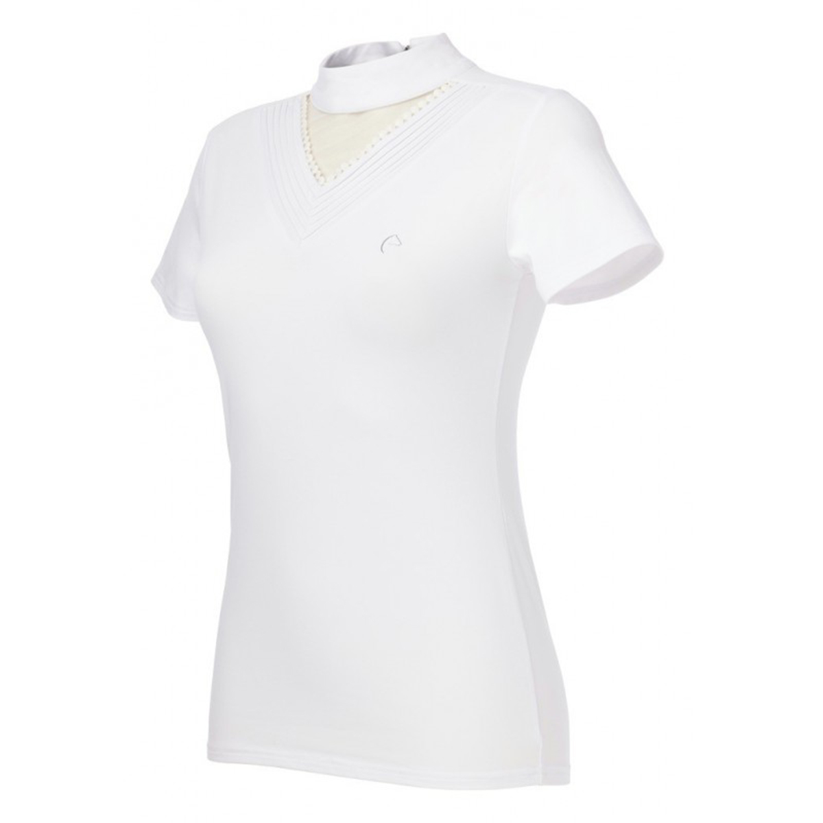 Рубашка с коротким рукавом для выступлений (Competition blouse). Выполнена из эластичного дышащего материала, отводящего влагу и обеспечивающего свободу движений. Имеет красивую сетчатую вставку под воротничком-стойкой. Легко надевать и снимать, благодаря небольшой молнии на спинке.