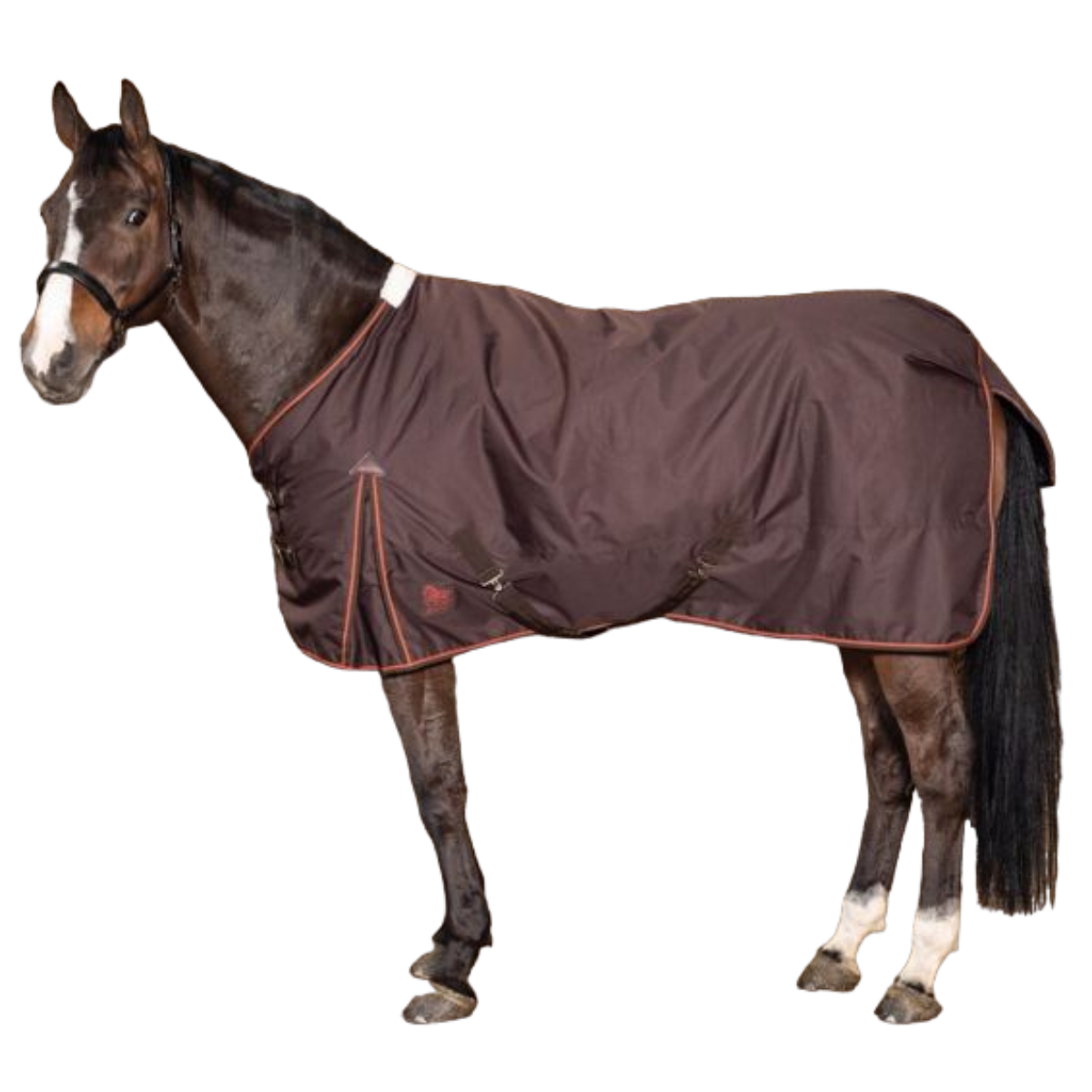 Противодождевая попона без капора (Blanket) из водонепроницаемого и ветронепродуваемого полиэстера рипстоп защитит вашу лошадь от осадков. Капор в комплект не входит. Удлинение в области хвоста обеспечивает идеальную посадку на лошади. Плечевые вытачки широкие, что предоставляет большую свободу плечам. Двойные застёжки спереди, эластичные перекрещивающиеся попонодержатели, съемные шнуры для ног, фурнитура серебристого цвета.