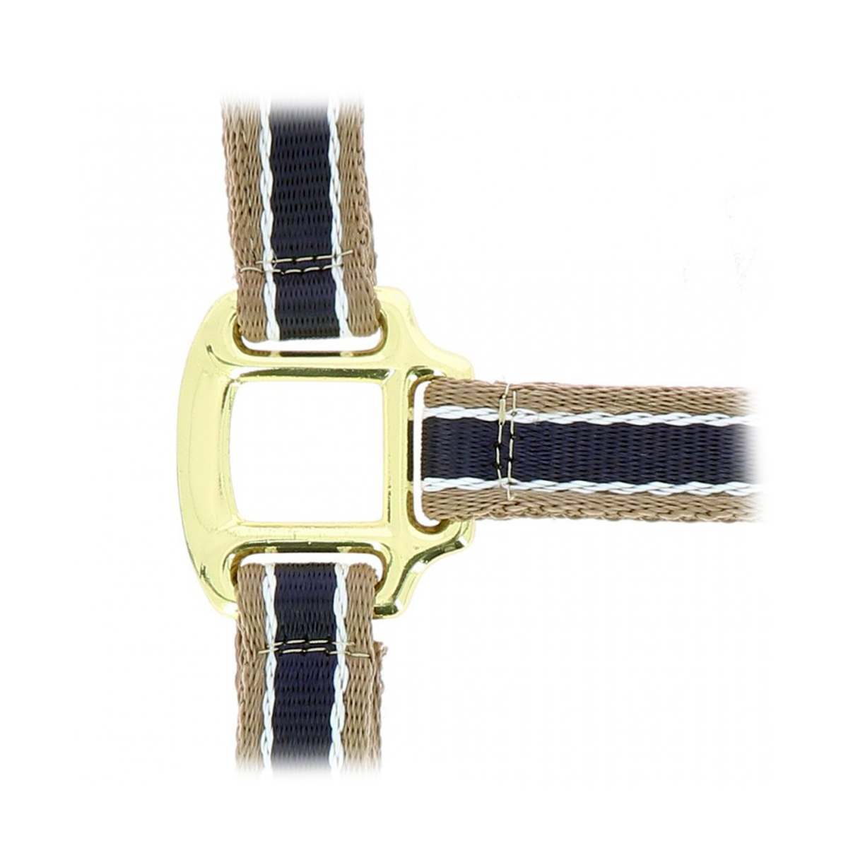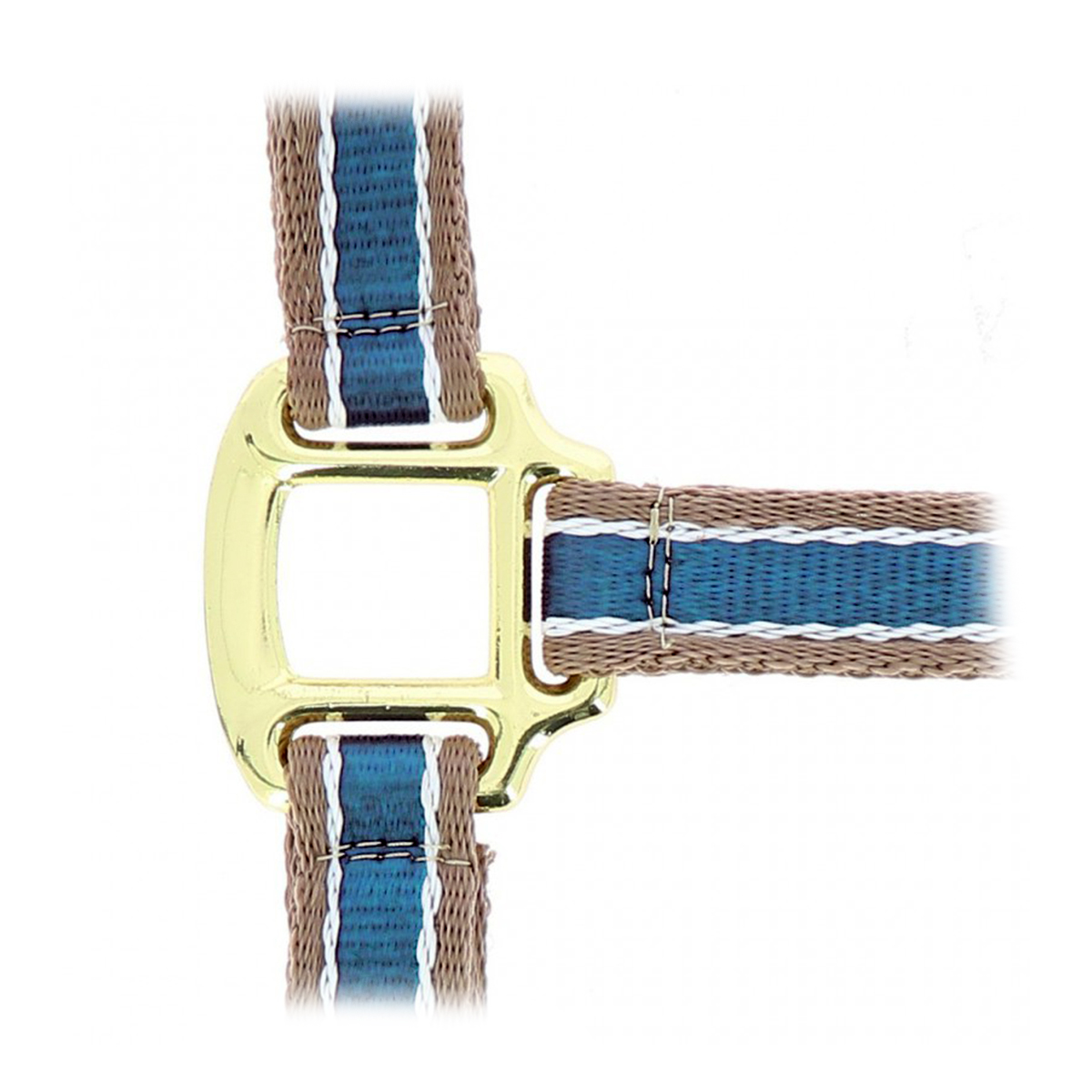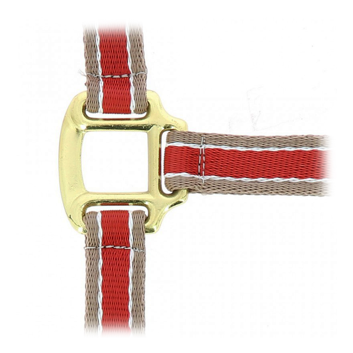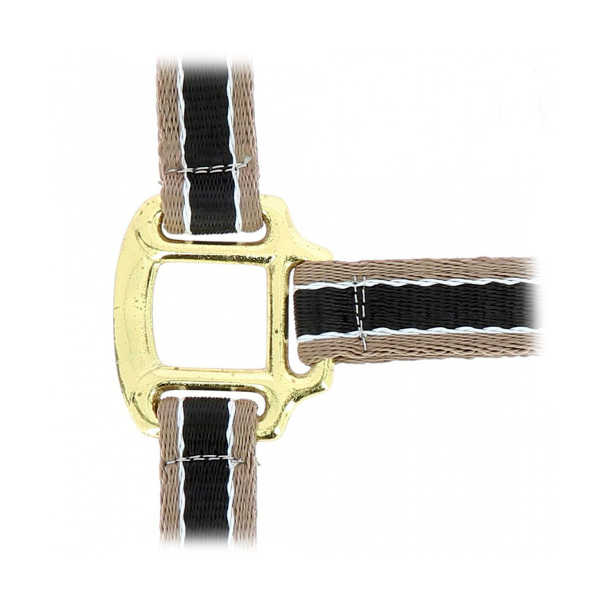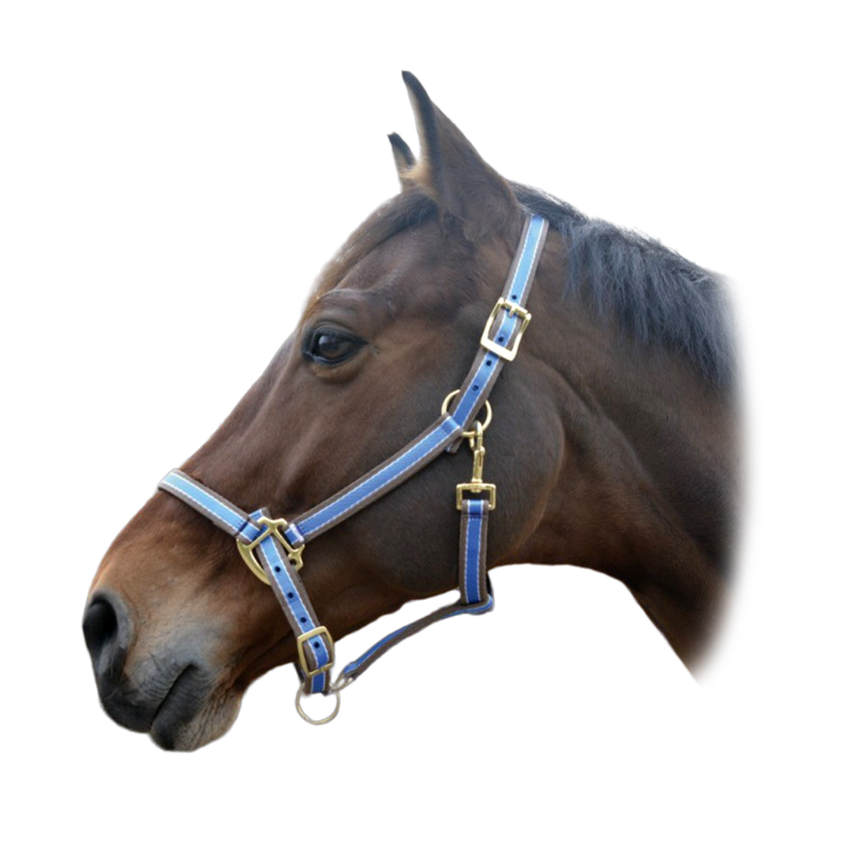 Прочный двухцветный недоуздок (Halter) из полипропилена. На затылочном и носовом ремне есть подкладка из мягкого полиэстра, что позволяет избежать натирания. Затылочный и подбородный ремени регулируются, обеспечивая идеальную посадку на голове лошади.