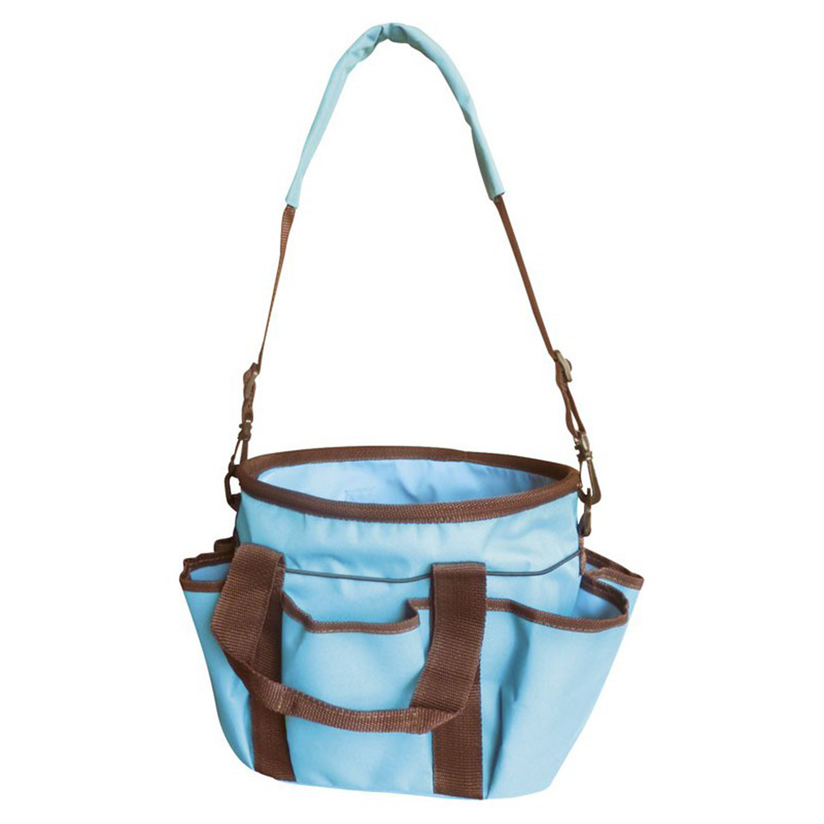 Эта нейлоновая сумка оснащена шестью внешними карманами для хранения оборудования для ухода (скребницы, щетки и другие аксессуары), а также средств по уходу и бинтов. Наличие нескольких карманов и вместительный основной отсек обеспечивают переноску и хранение всех предметов в нужном положении. Сумка оснащена двумя ручками и съемным регулируемым плечевым ремнем с защелкивающимися крючками.