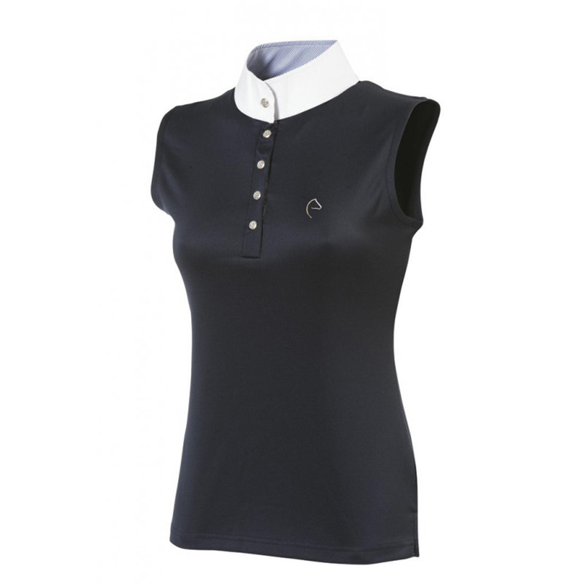Рубашка без рукавов для выступлений (Competition blouse). Воротник-стойка выполнен из контрастного материала, застегивается на кнопки серебристого цвета.