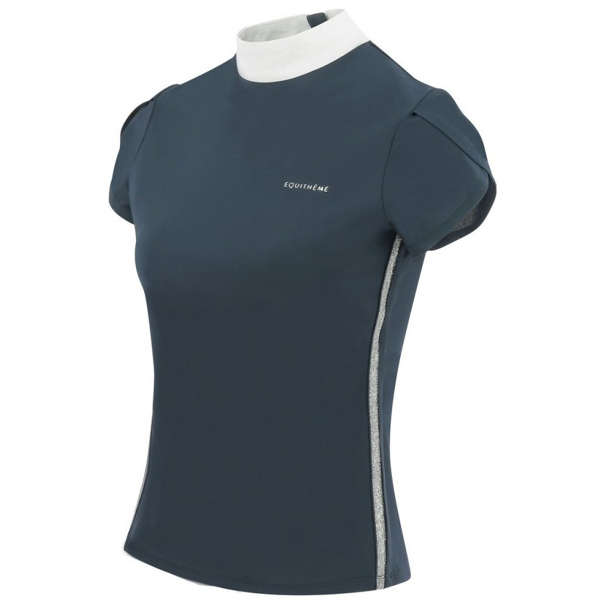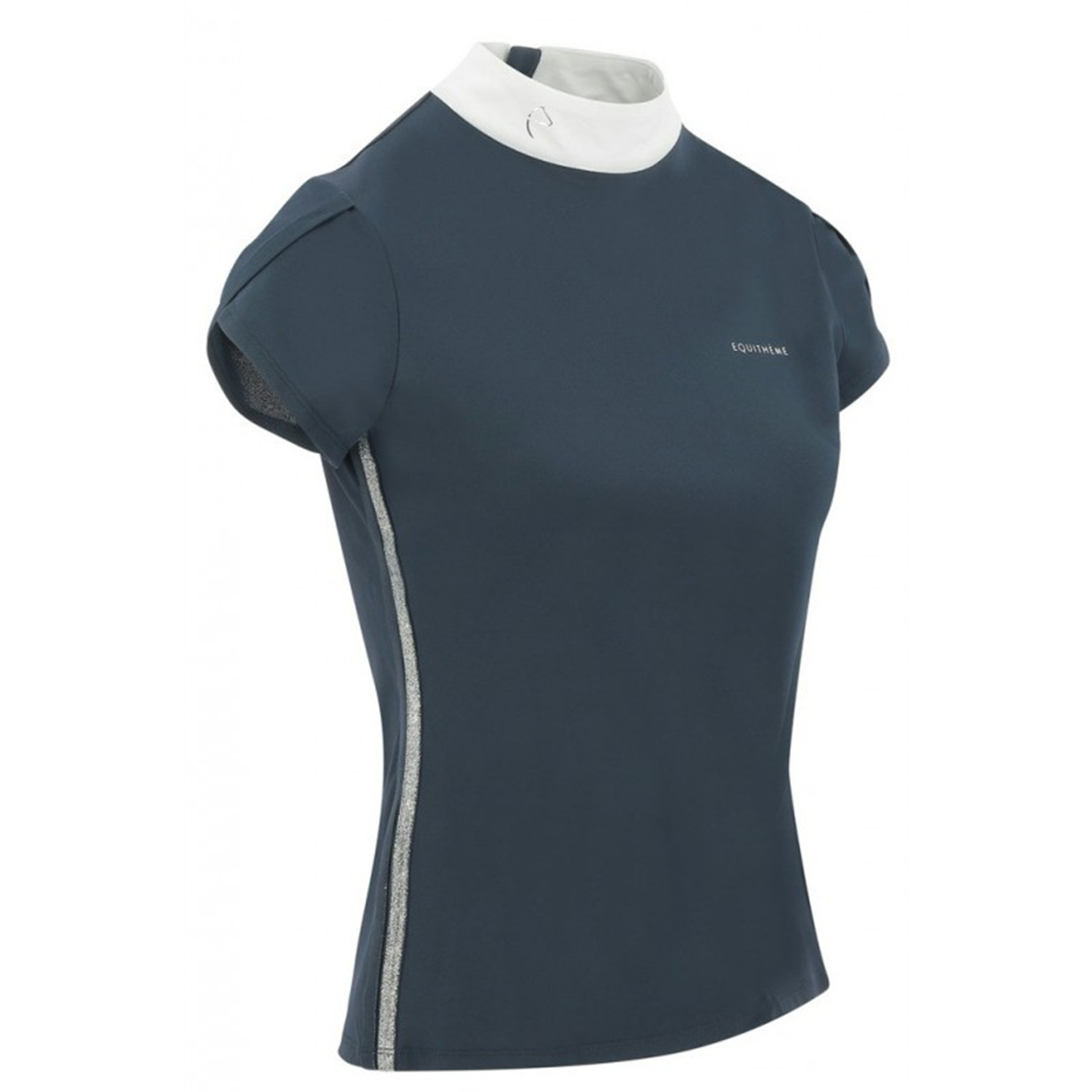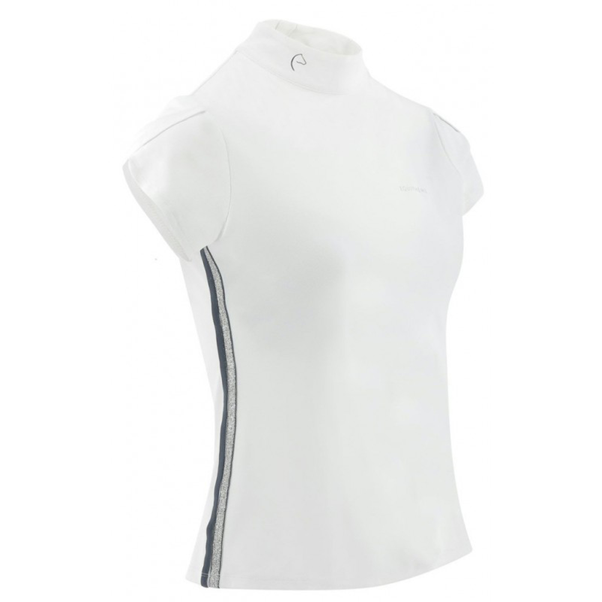 Элегантная рубашка для выступлений (Competition blouse). С короткими рукавами-"тюльпанами" и изящным воротничком-стойкой. Выполнена из эластичного дышащего материала, отводящего влагу и обеспечивающего свободу движений. Украшена контрастными полосами по бокам. Легко надевать и снимать, благодаря небольшой молнии на спинке.