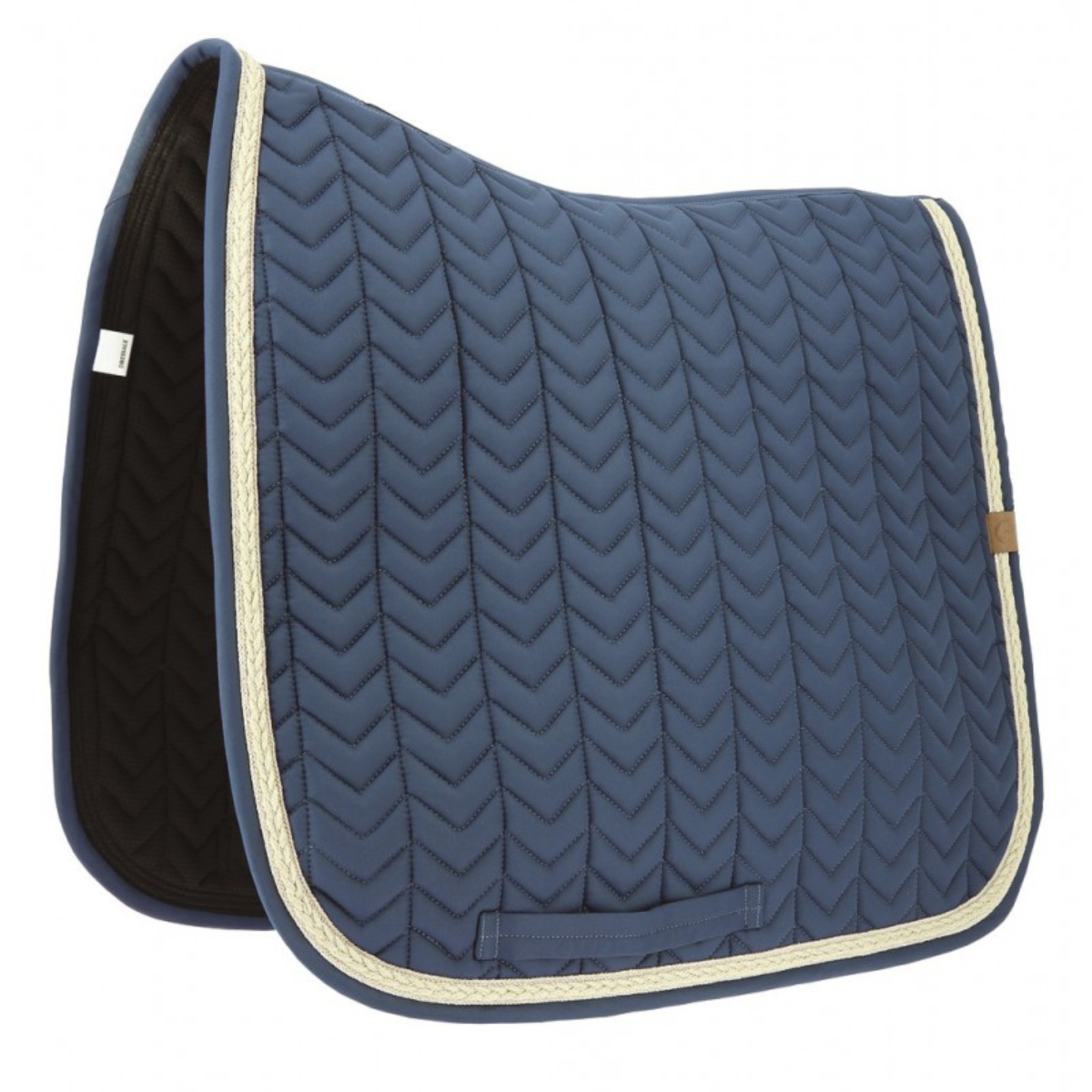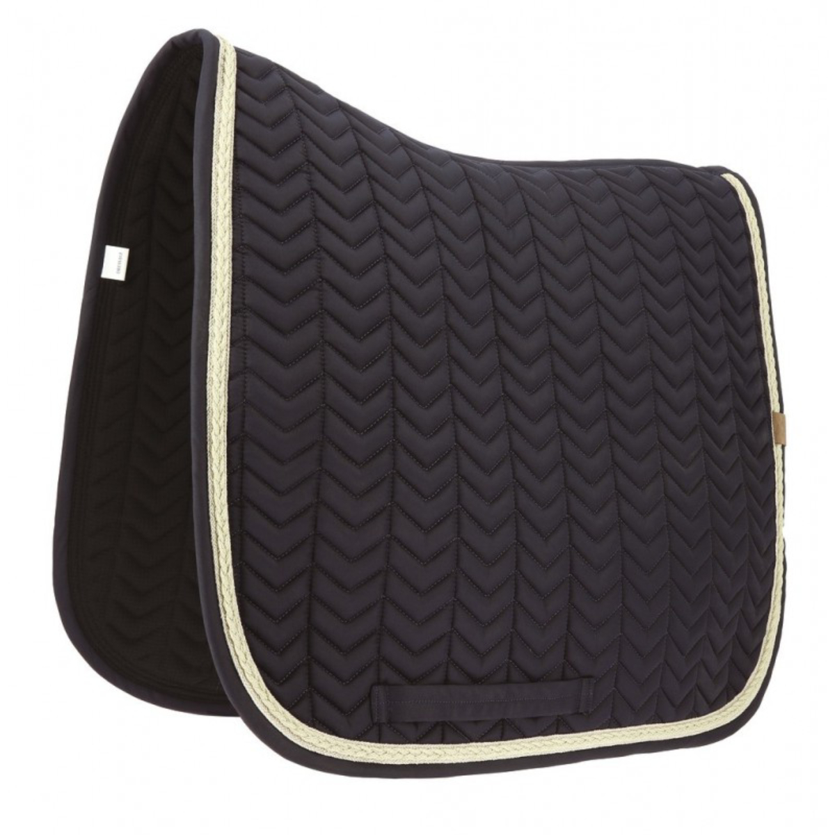 Вальтрап (Saddle Pad) анатомической формы. Дышащая сетчатая подкладка гарантирует превосходное поглощение влаги. Наполнитель 200 гр., высотой 8 мм. делает вальтрап объемным, что очень важно для амортизации. Вальтрап из плотной ткани, украшен декоративным шнуром и фигурной отстрочкой. Вальтрап хорошо держит форму и легок в уходе.