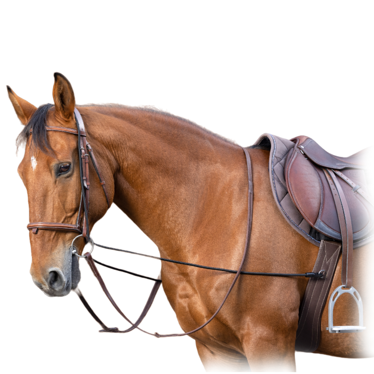 Гог эластичный (Training rein) )регулируемый для расслабления шеи лошади. Гог проходит по затылку через трензельные кольца и крепится к подпруге между передними ногами, либо по бокам. Когда лошадь задирает голову слишком высоко, гог оказывает мягкое давление на затылок, которое прекращается, как только она опустит голову и шею. Воздействие сильнее, когда гог закреплен на подпруге между передними ногами. Регулируется клипсами.