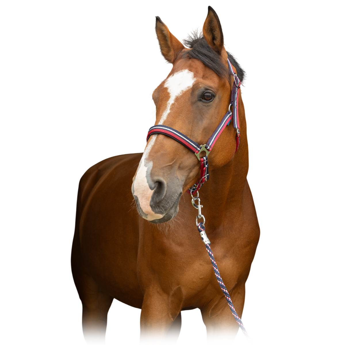 Нейлоновый недоуздок в комплекте с чумбуром (Halter and Lead Set). Ремни на затылке и переносице регулируются, что обеспечивает идеальную посадку на голове лошади, неопреновая подложка предотвращает натирание. В комплекте чумбур из мягкого нейлона, длиной 2,5 м с простым карабином. Фурнитура серебристого цвета или цвета розовое золото.