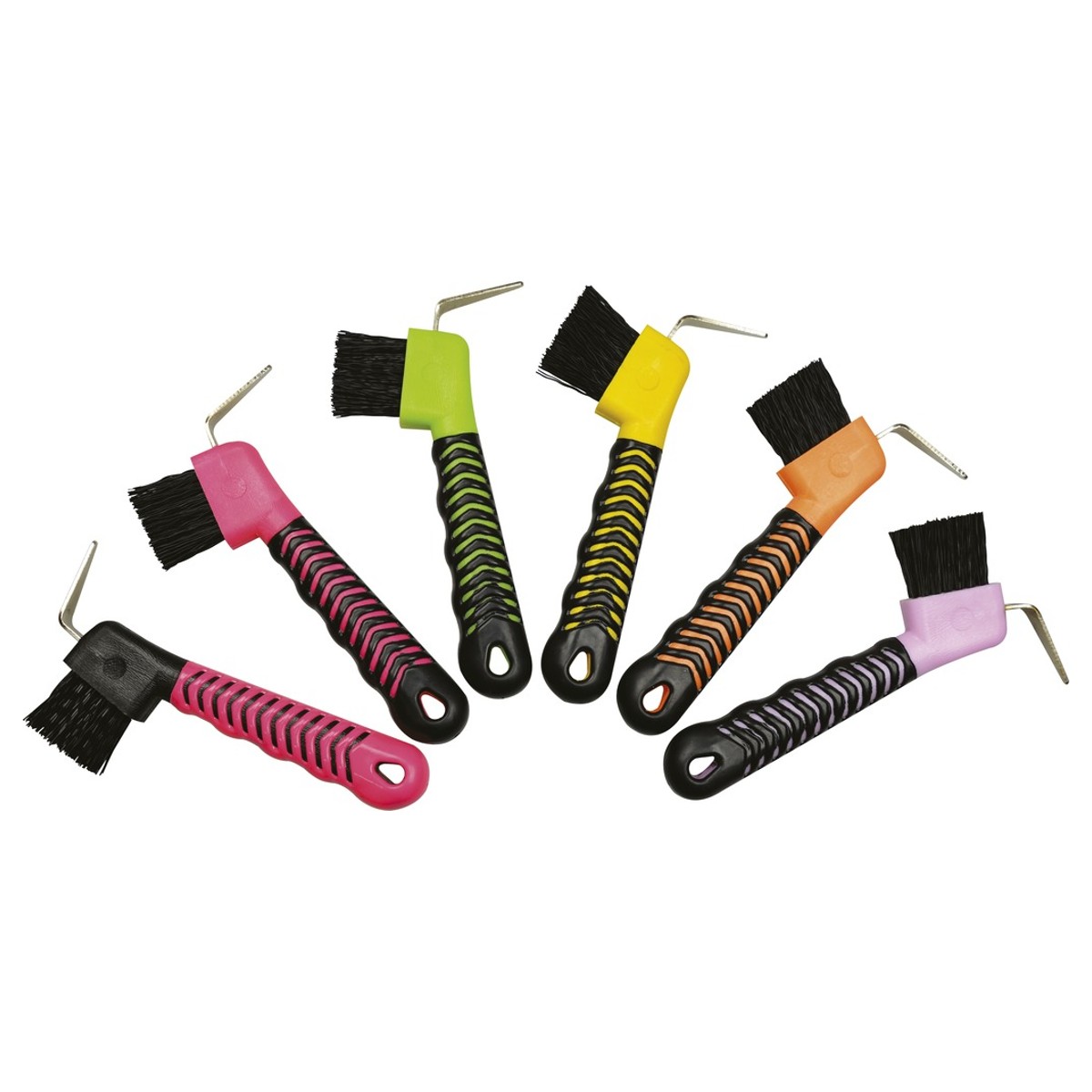 Крючок (hook) и щётка для копыт с пластиковой прорезиненной рукояткой.