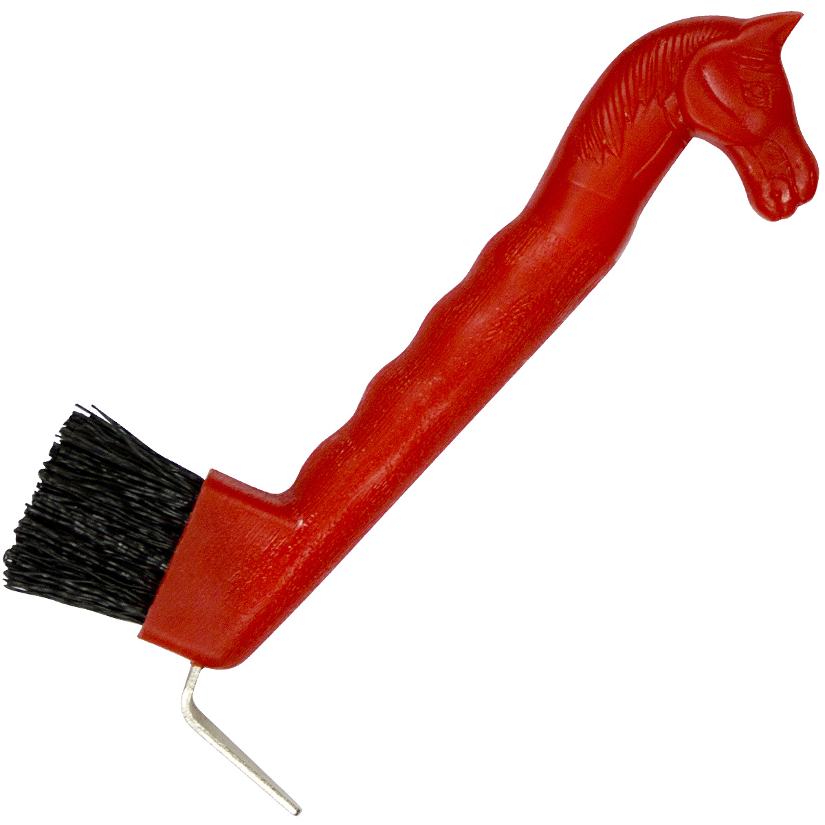 Крючок (hook) и щетка для копыт с пластиковой рукояткой в виде головы лошади.