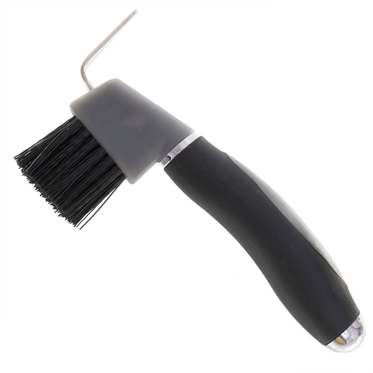 Крючок (hook) и щетка для копыт с пластиковой прорезиненной рукояткой. украшенной металлическими вставками. Удобная анатомическая ручка.