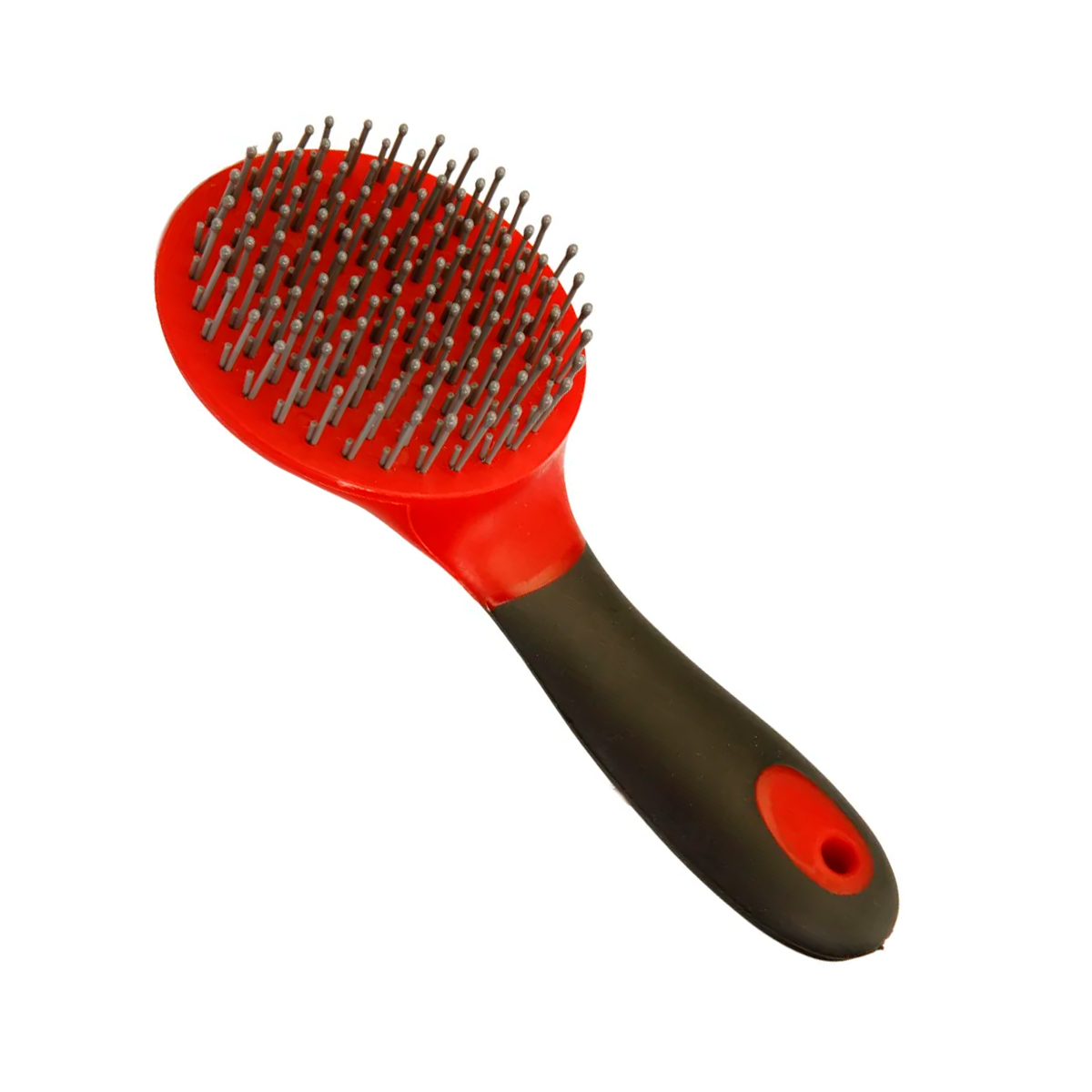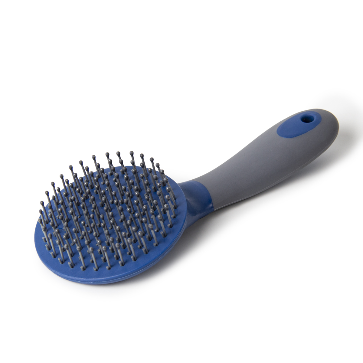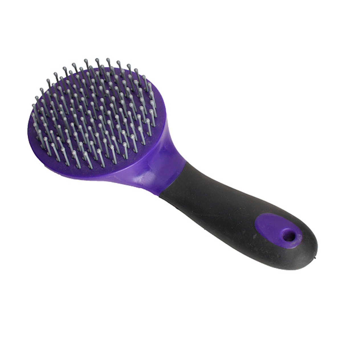 Круглая расческа с удобной прорезиненной ручкой для гривы и хвоста (hairbrush for mane and tail), поможет вам ухаживать за вашей любимой лошадкой. Защитные "шарики" на зубчиках нужны, чтобы не вырывать волосы при расчесывании. Длина - 23 см.