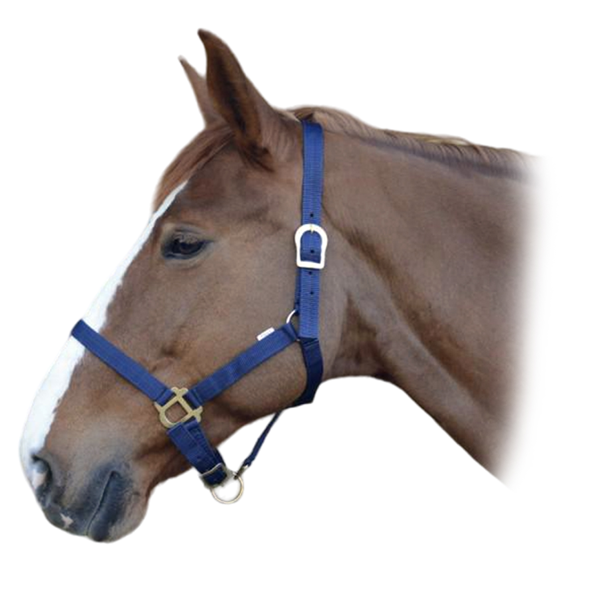 Прочный недоуздок из высококачественного нейлона (Halter). Затылочный и носовой ремени регулируются, что обеспечивает идеальную посадку на голове лошади. Фурнитура золотистого цвета.
