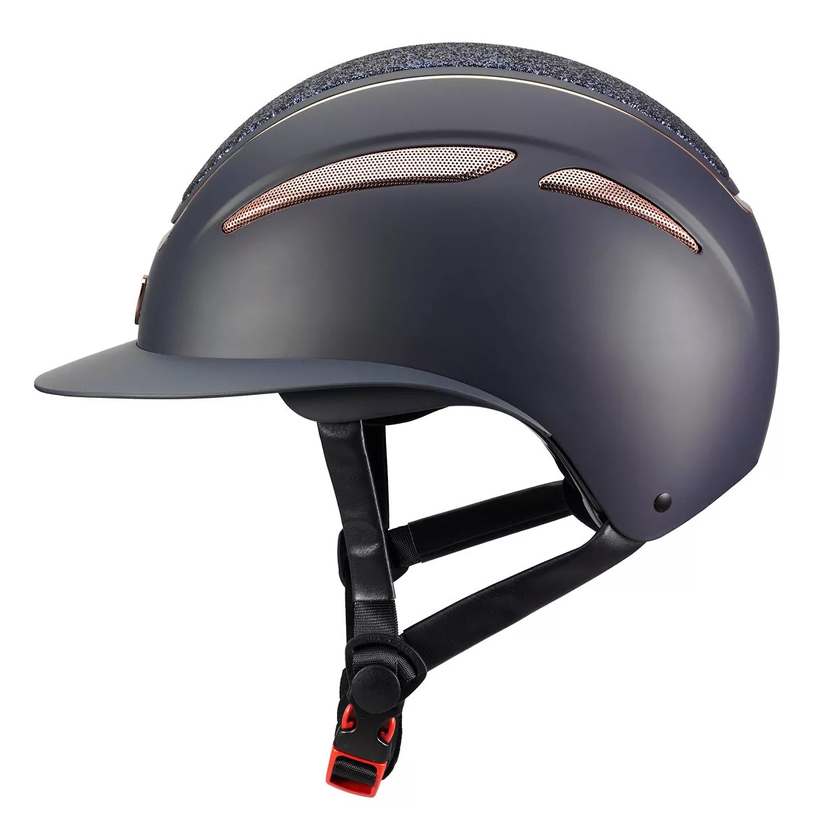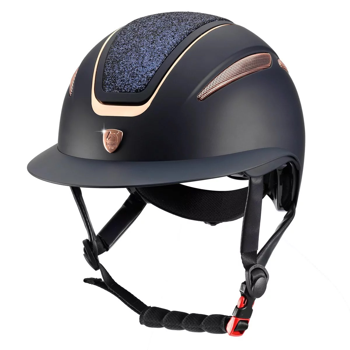 Легкий пластиковый регулируемый шлем (adjustable helmet for rider) будет незаменим для верховой езды. Декоративные вставки цвета розовое золото. Широкий козырек поло. Шлем сочетает в себе элегантный внешний вид с практичностью и функциональностью. Оснащен двухсторонними вентиляционными решетками для улучшения циркуляции воздуха.
