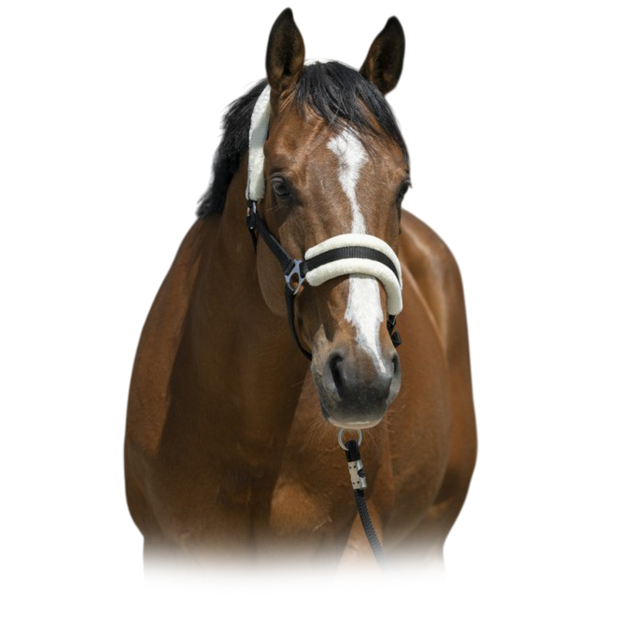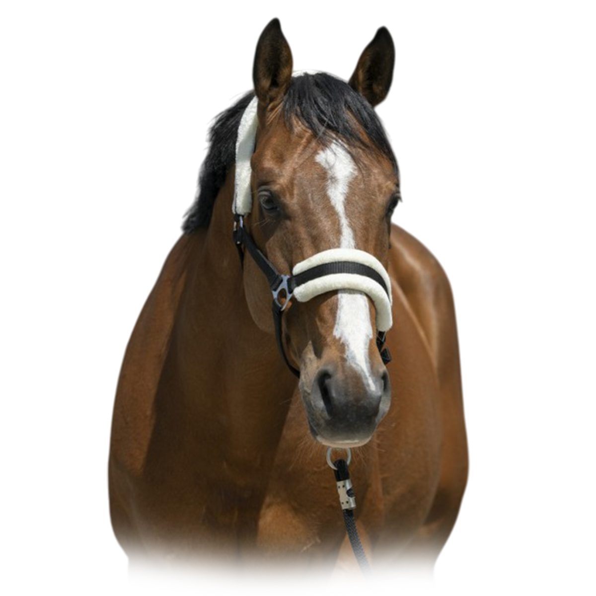Прочный недоуздок с меховушками (Halter with plush padding). Меховые подложки предотвращают натирание. Подбородный и затылочный ремни регулируются, что обеспечивает идеальную посадку на голове лошади. Качественный плотный материал недоуздка и прочная металлическая фурнитура продлят срок службы недоуздка. Застегивается на карабин, что упрощает процесс одевания.