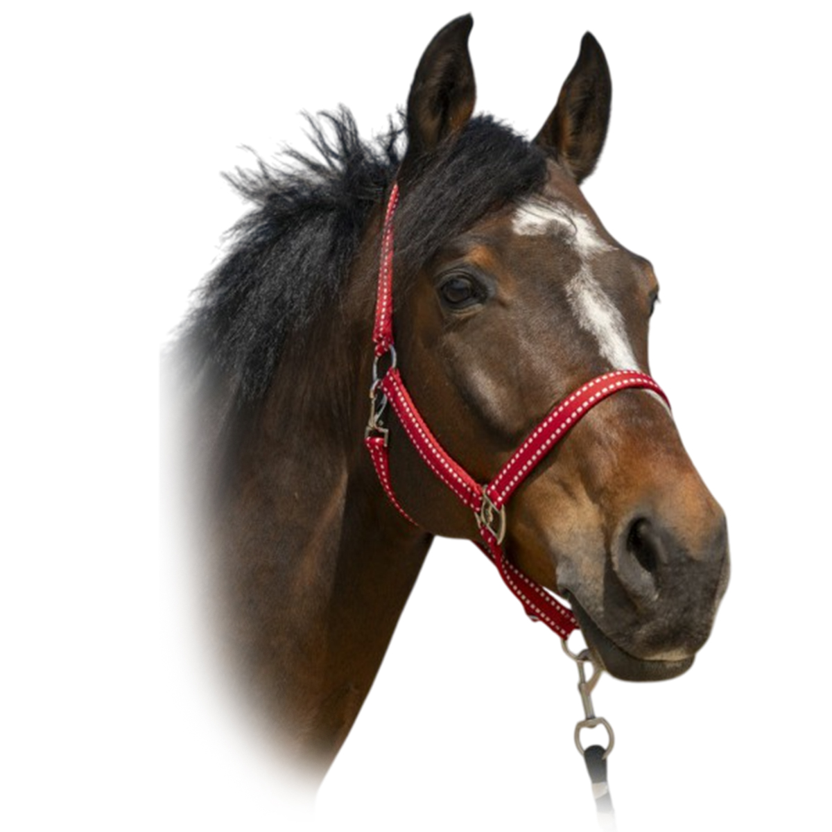 Прочный недоуздок из мягкого полипропилена (Halter). Декорирован двумя строчками контрастного цвета. Затылочный ремень регулируется. Недоуздок оснащен тремя карабинами для легкого снятия. Металлические пряжки серебристого цвета с принтом NORTON.