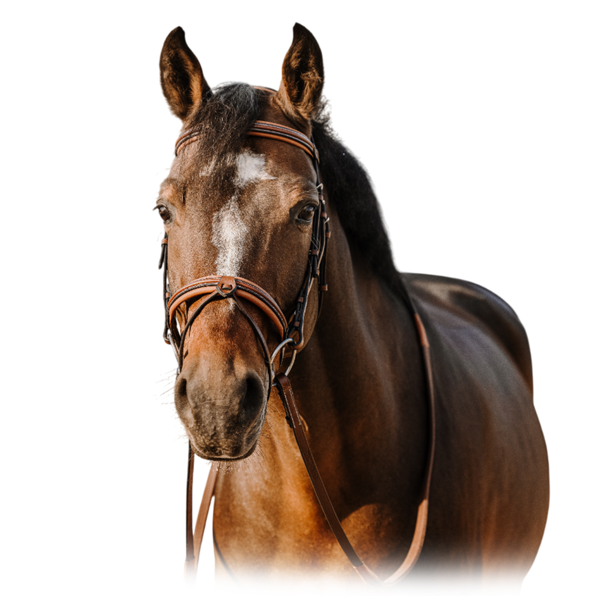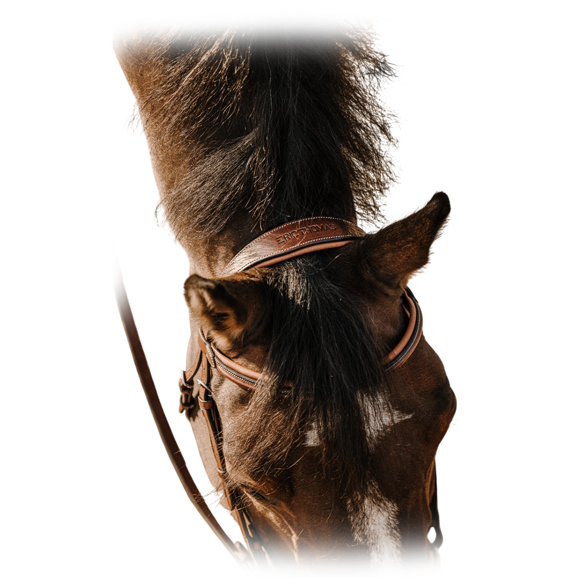 Оголовье из натуральной кожи (Leather Bridle). Затылочный, налобный ремни и капсюль анатомической формы. Простой капсюль снабжен съемным ремешком-восьмеркой. Налобник украшен декоративной строчкой. Нащечные ремни на крючках. Фурнитура серебряного цвета. Трензель и повод в комплект не входят.