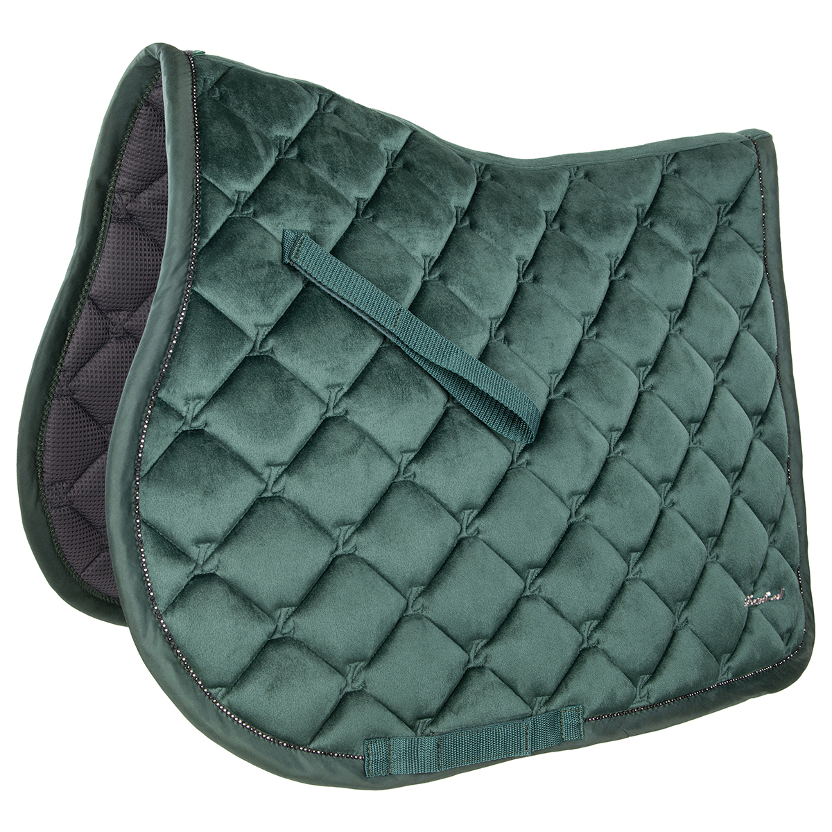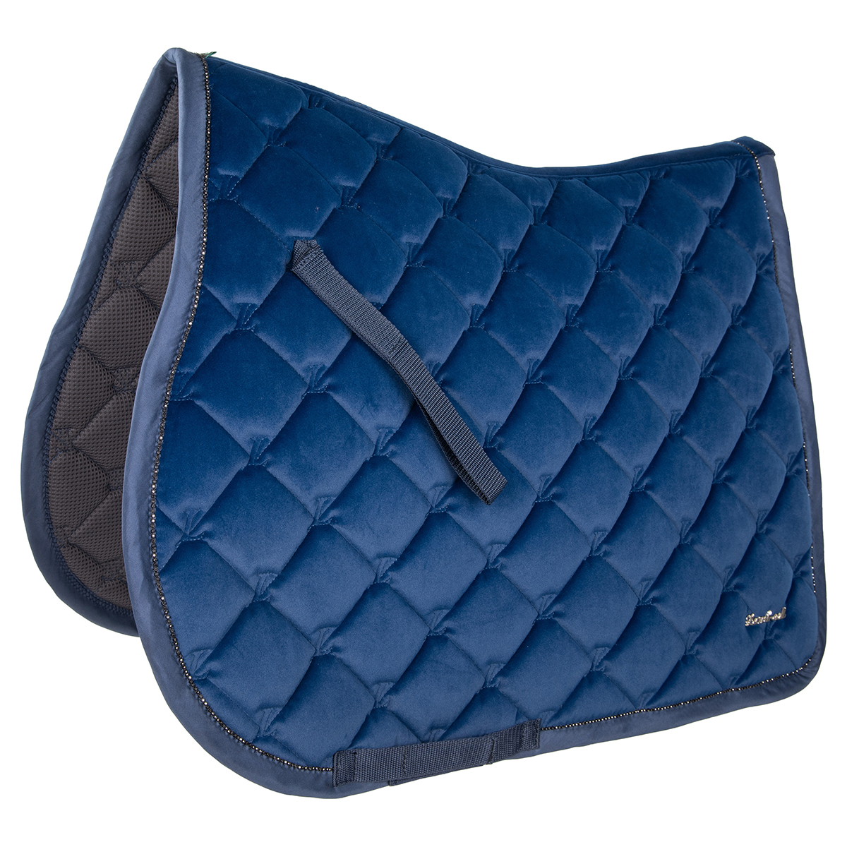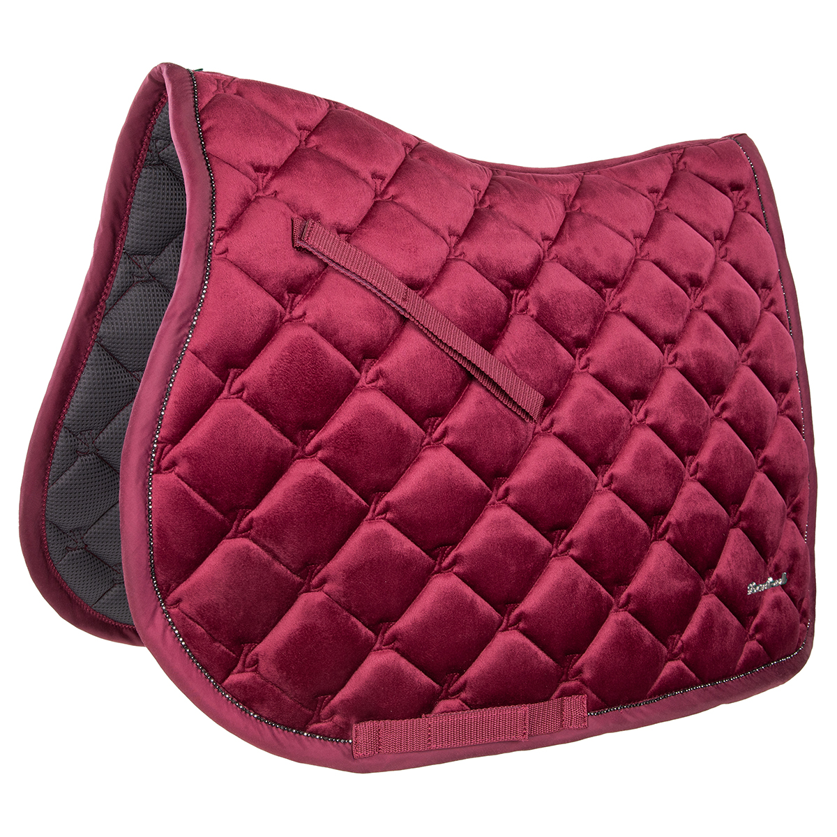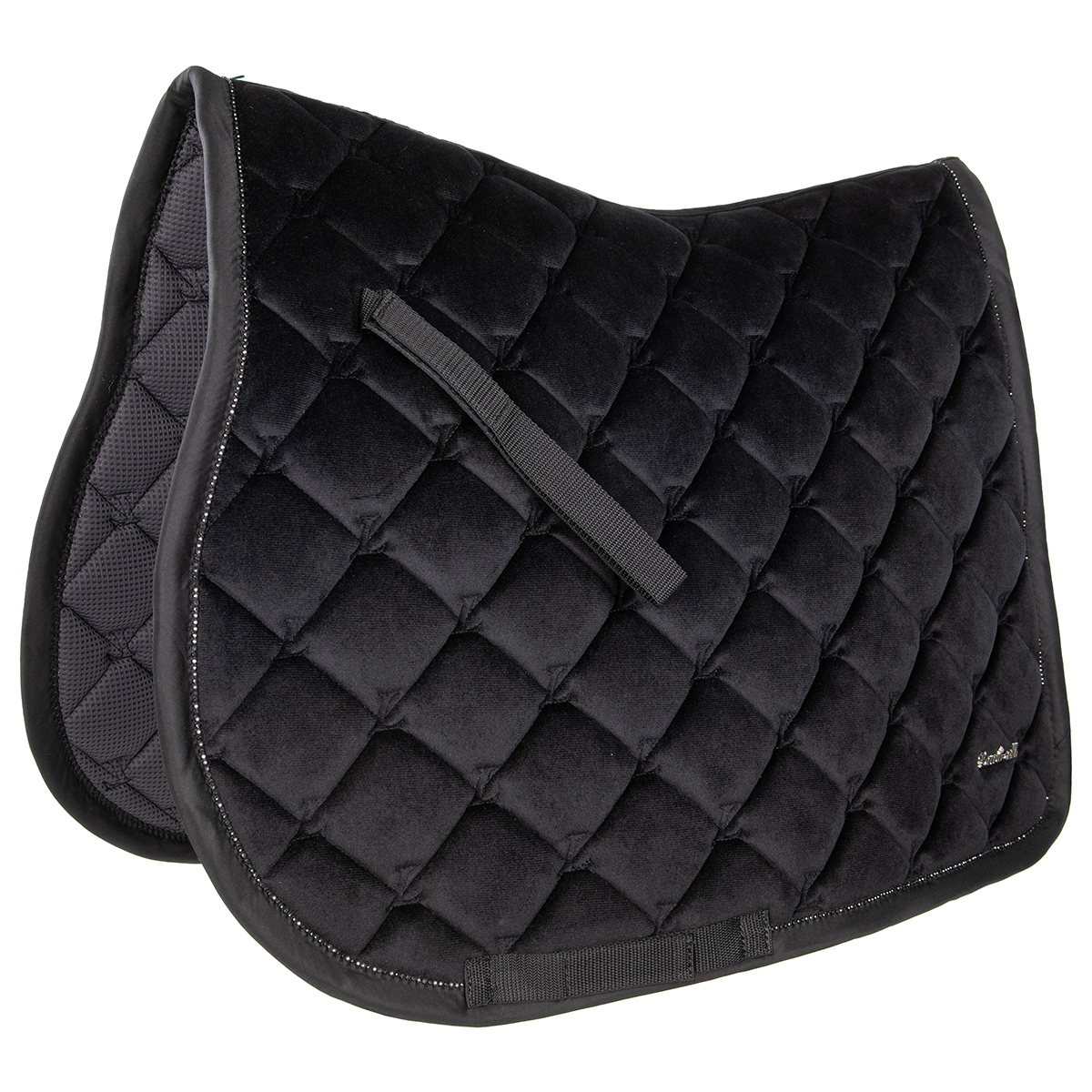 Универсальный вальтрап (All-Purpose Saddle Pad) анатомической формы. Идеальное сочетание изысканности и комфорта. Тонкий бархат из матового полиэстера Oxford. Дышащая сетчатая подкладка гарантирует превосходное поглощение влаги. Пена высокой плотности, наполнитель Synthermax. Блестящая отделка из стразов по краю. Вальтрап хорошо держит форму и легок в уходе. Оснащен петлями для подпруги.